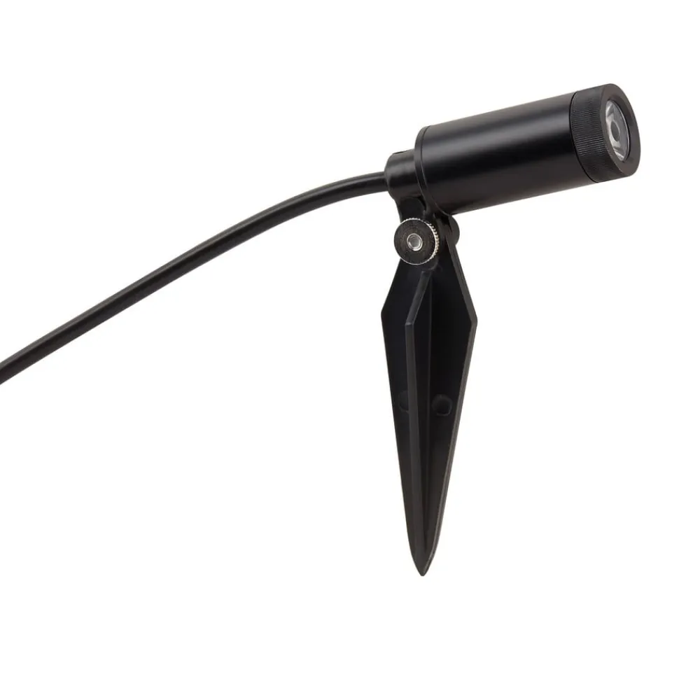 sæt med 4 jordspyd til målrettet belysning i haven Heath-jordspydssættet består af fire LED-spots, en firevejs stikdåse, en driver med tilslutningskabel (konturstik), fire jordbeslag og fire jordspyd. På den måde kan det praktiske sæt nemt tilsluttes en eksisterende udendørs stikkontakt, uden at der skal laves tilslutninger. Spottene kan enten fastgøres til jorden med de runde bundplader eller stikkes ned i jorden med jordspyddene.
