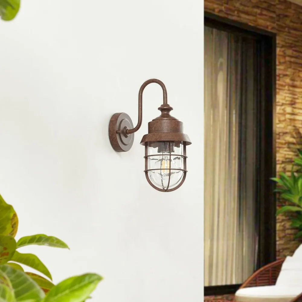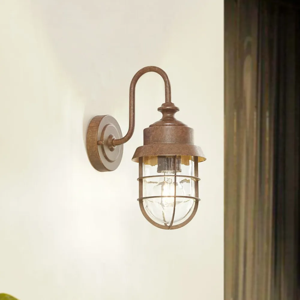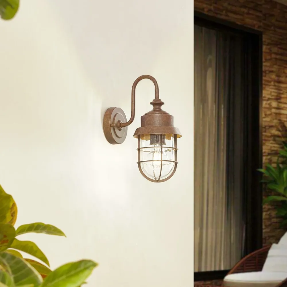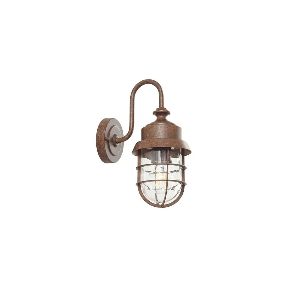 Lanterneformet udendørs væglampe Adalie i rustfarver Den lanterneformede udendørs væglampe Adalie udstråler en rustik flair og skaber en indbydende atmosfære i ethvert udendørs område. Dens rustfarvede finish passer perfekt ind i både traditionelle og moderne miljøer og skaber stilfulde accenter på facader eller indgangspartier. Den robuste konstruktion lover holdbarhed og modstandsdygtighed over for elementerne. Selvom der ikke medfølger en lysdæmper, kan lysstyrken nemt justeres ved hjælp af en ekstern lysdæmper i kombination med en dæmpbar lyskilde (medfølger ikke) for at skabe den ønskede stemning.