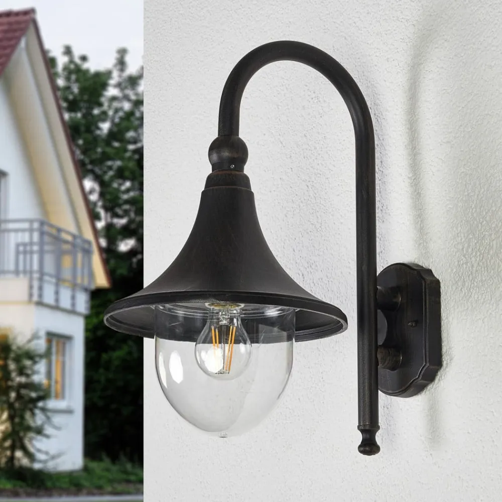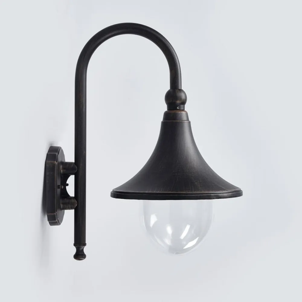 Daphne udendørs væglampe med antik sort finish, der lyser nedad
