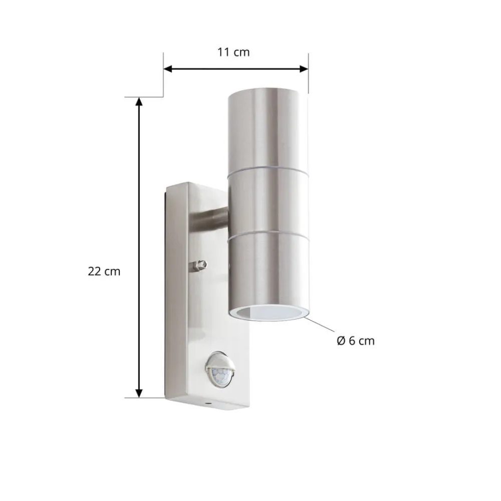 Det er en stor fordel, at denne lampe har en integreret bevægelsessensor, da Eyrin dermed kan bruges som udendørs væglampe uden at bruge for meget strøm, fordi den kun tænder, når personer nærmer sig lampen og registreres af sensoren. Lyset stråler opad og nedad, og denne udendørs væglampe er designet til brug med GU10-pærer.