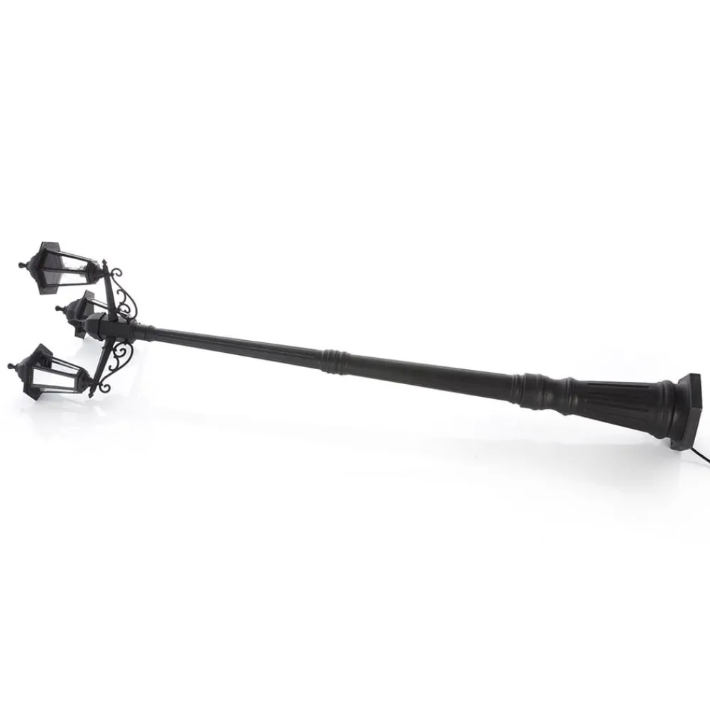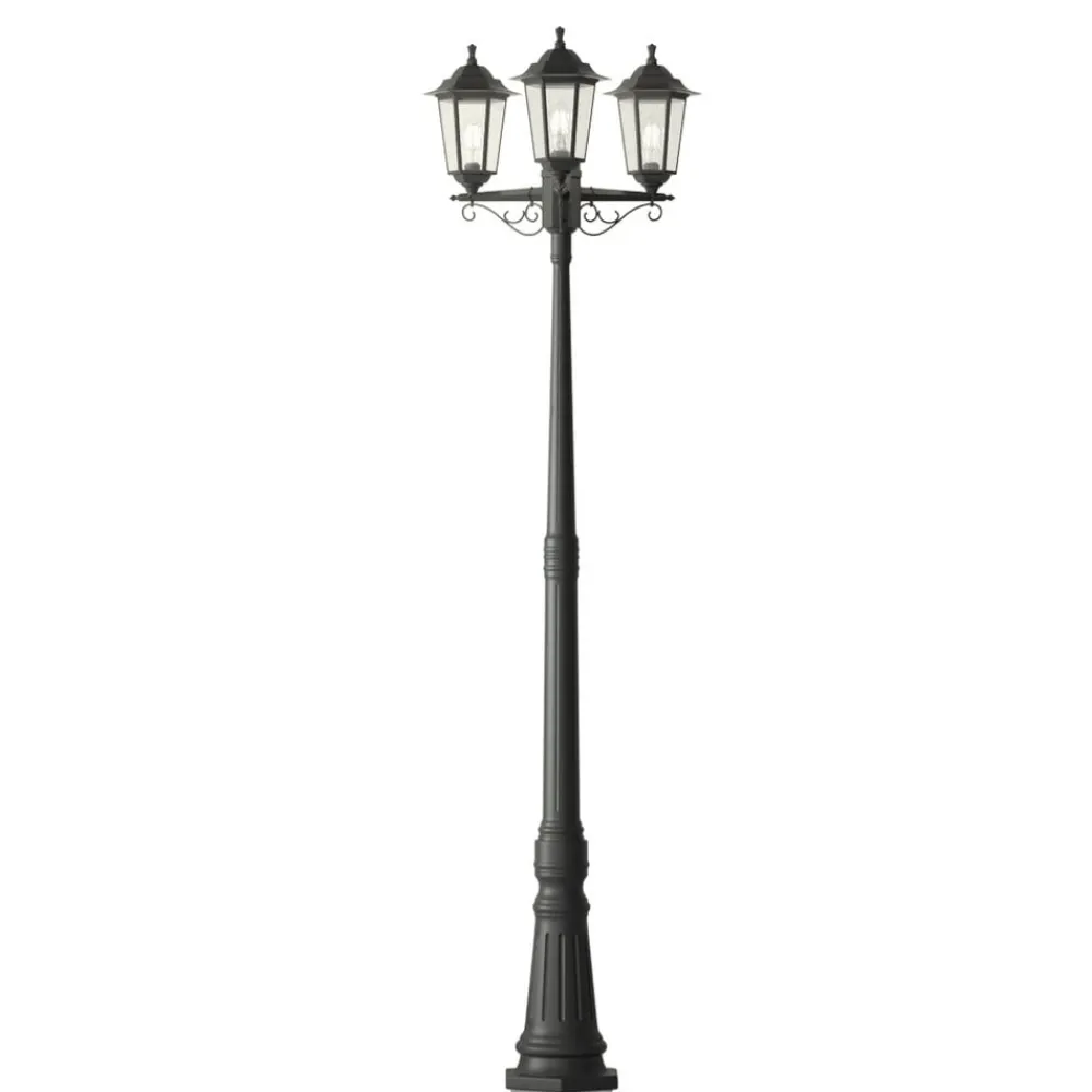 Nane 3 lyskilder i nostalgisk stil Denne lygtepæl er ideel til belysning i store haver og parker. De tre skærme ligner lygter, så du straks kan genkende den nostalgiske charme, der udgår fra udendørslampen. Overfladen på den saltvandsresistente lygtepæl er lavet af plast og har en sort finish, der symboliserer dens alsidige brug i klassiske stilarter. Sideindsatserne er lavet af glas og giver et klart udsyn til pærerne. Pærerne skal derfor vælges med omhu. Energibesparende LED-pærer med glødetrådsteknologi eller et nostalgisk rustikt look kan varmt anbefales. Et ægte HighLight med en særlig charme!