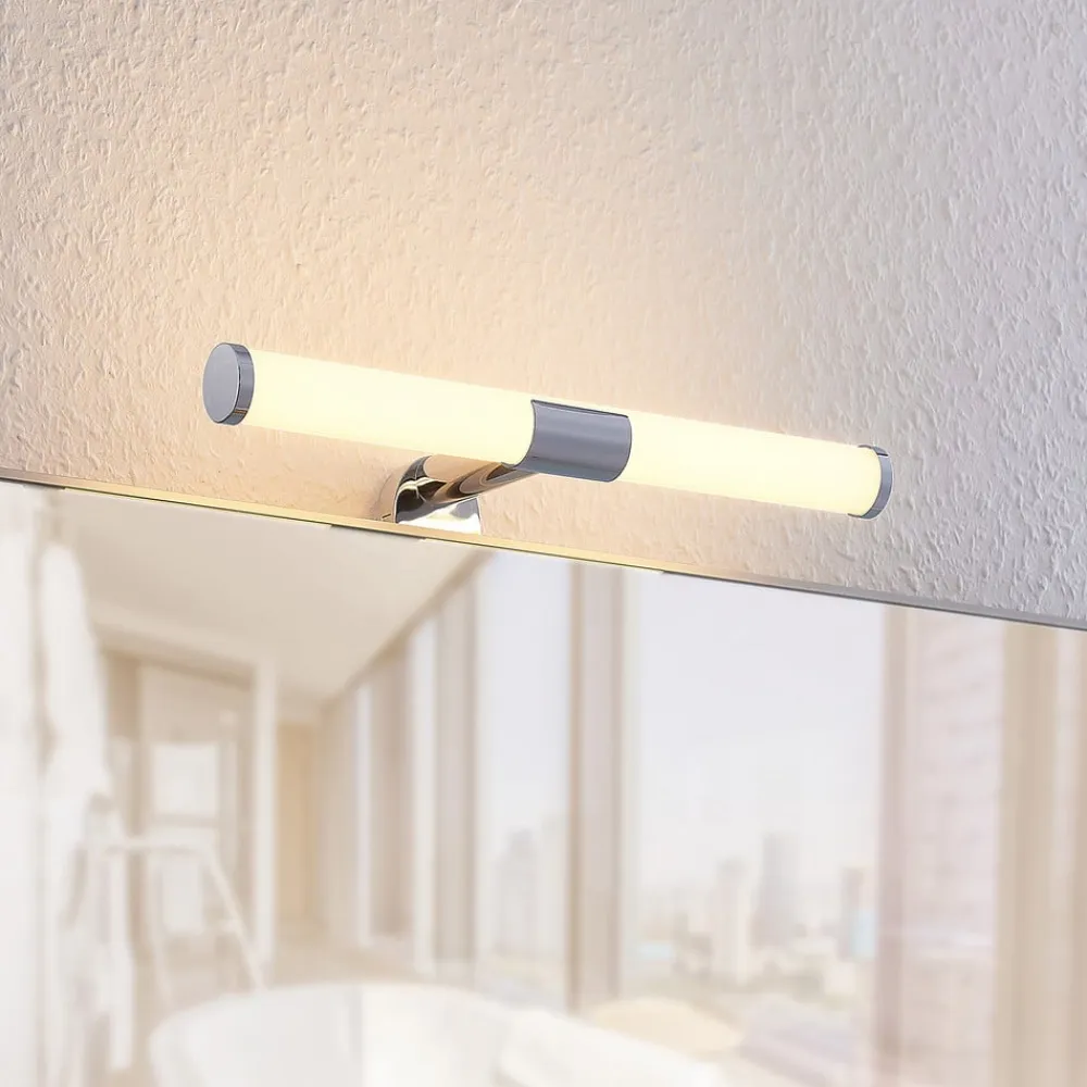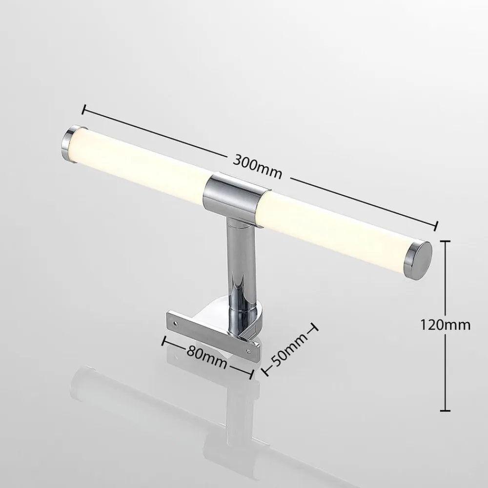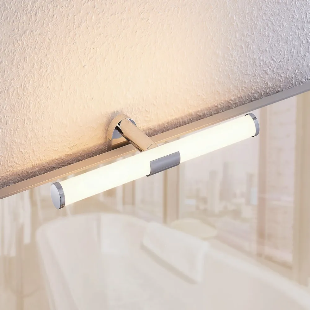 “Spejl, spejl på væggen, hvem er den smukkeste af dem alle?” For at kunne besvare dette spørgsmål fyldestgørende er det nødvendigt med en effektiv spejlbelysning i badeværelset. LED-spejllampen Naili er med sine varmt hvide LED’er perfekt egnet til dette formål og kan monteres på spejlet på ingen tid med to skruer. Intet står i vejen for dens anvendelse på badeværelset med IP44, men lampen gør også en god figur over spejlet i gangen.