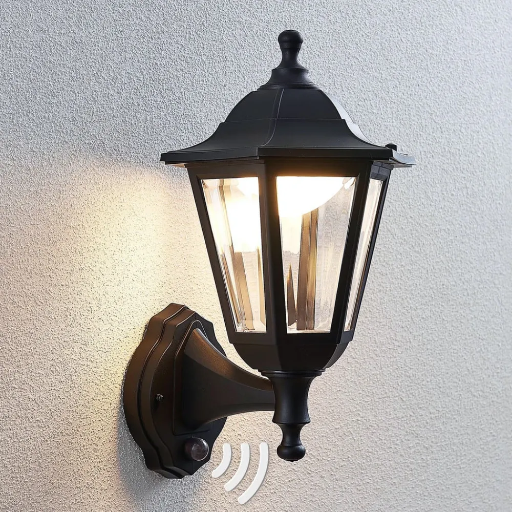 Lindby Væglampe Med Sensor|Terrassebelysning>udendørs LED-væglampe Iavo, sensor, sort, lygte