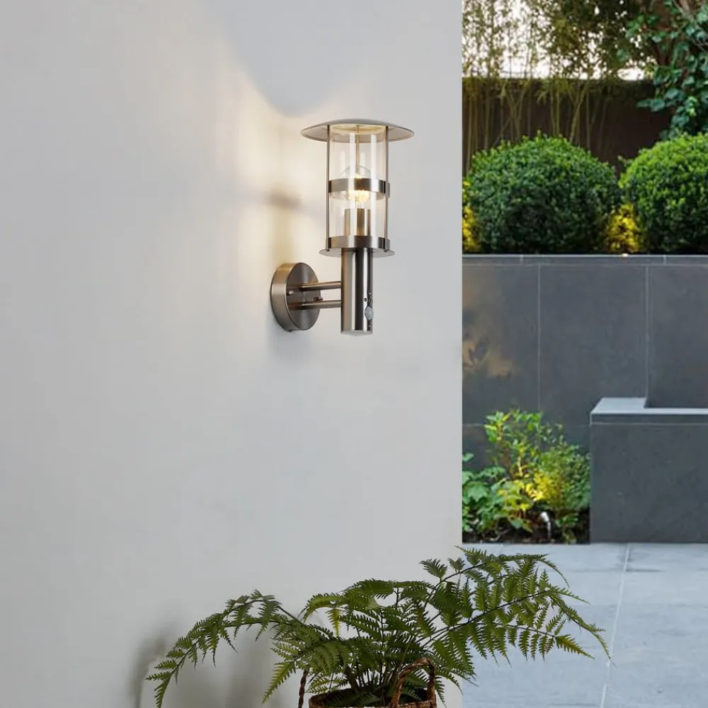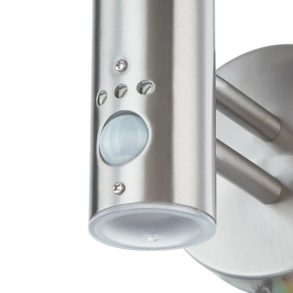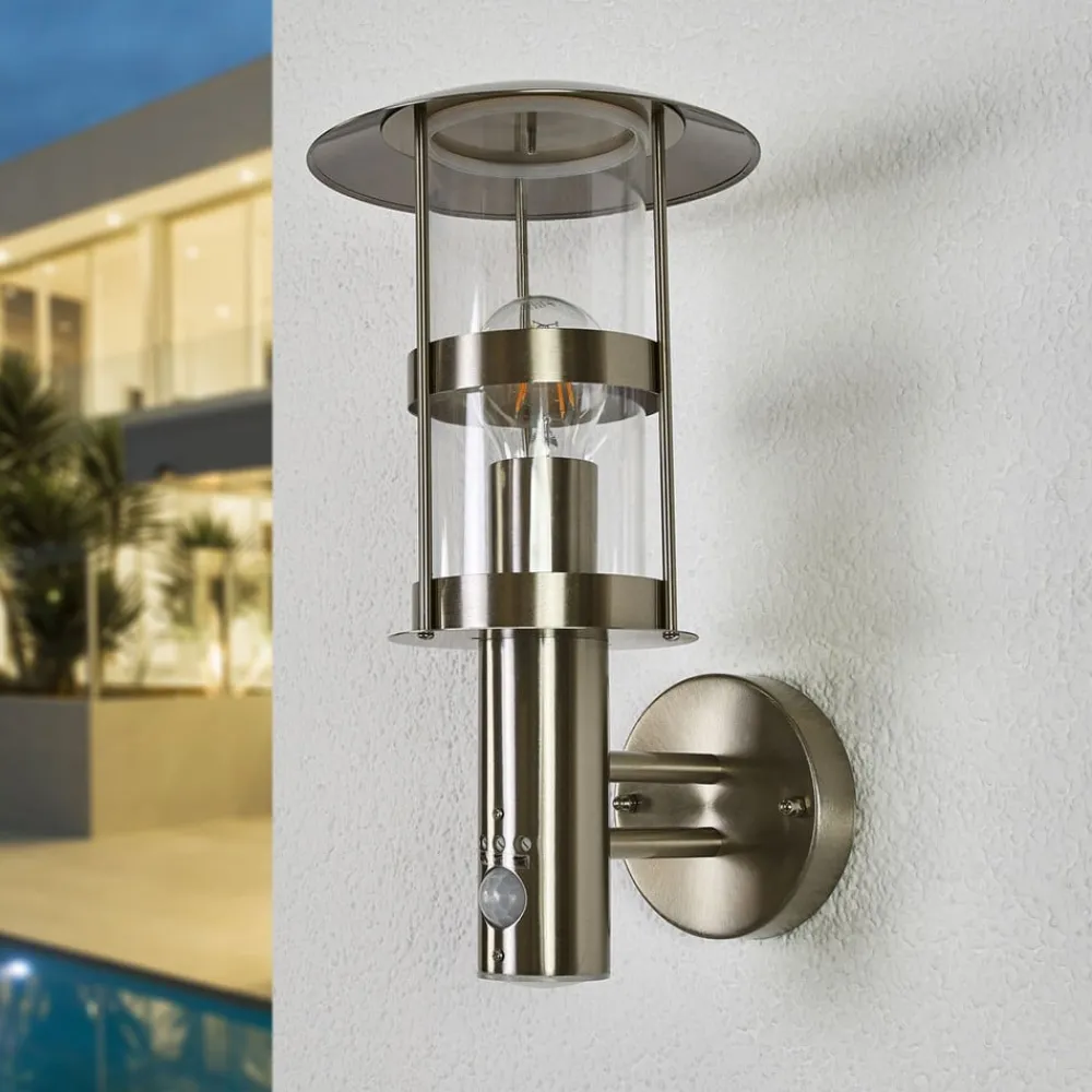 Noemi udendørs væglampe i rustfrit stål med kuppeltag og integreret bevægelsessensor