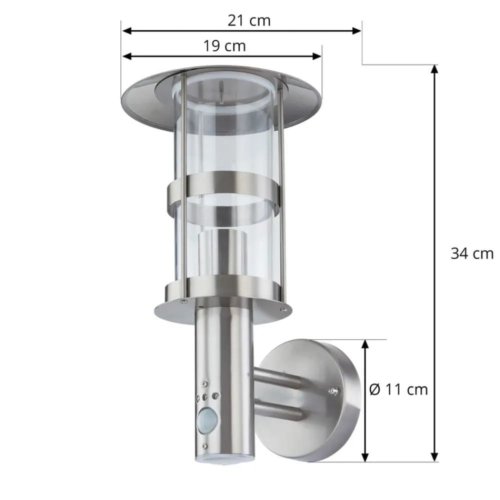 Da der er integreret en bevægelsessensor i den nederste del af rammen, reagerer udendørs væglampe på bevægelser fra personer, der nærmer sig lampen. Sensorens registreringsvinkel er 90°, og rækkevidden er 6-8 meter. Lysvarigheden kan indstilles mellem 10 sekunder og 4 minutter.