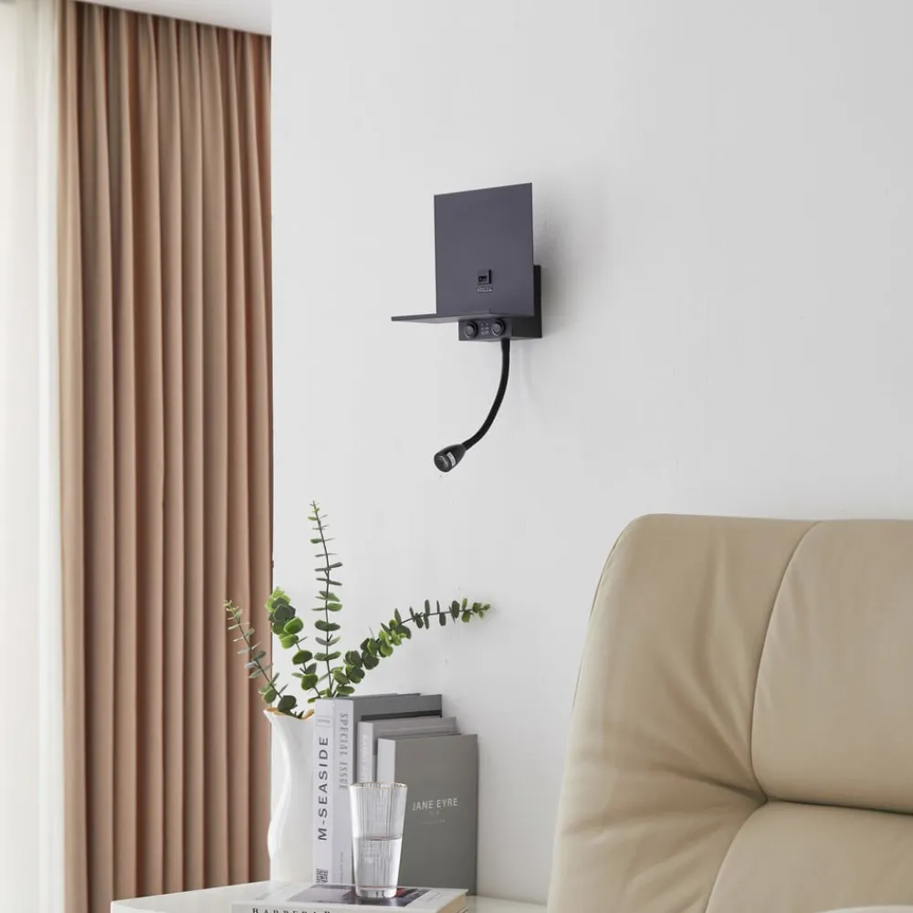 Thorid 2 lyskilder med fast LED og G9 fatning Giv dit hjem en hyggelig belysning med denne dekorative væglampe. Du kan nemt tænde og slukke væglampen ved hjælp af en kontakt. Væglampen fuldender belysningskonceptet i ethvert boligområde med sit attraktive udseende på en behagelig måde. Lysets varmhvide farve skaber en god atmosfære i dit opholdsrum. Den attraktive lampe skaber harmonisk belysning og en hyggelig atmosfære og er en berigelse for alle opholdsrum. Lampen har en G9-fatning, og dens fleksible arm har en permanent installeret LED. Væglampen i jern er færdig i sort. Med denne væglampe vælger du Lindby-mærkets høje kvalitet. Væglampen passer nemt ind i enhver eksisterende indretningsstil og kan ikke kun give belysning, men kan også være en flot dekoration. Du vil ikke være foruden denne lampe – Inkluderer USB-indgang; perfekt til opladning af små enheder