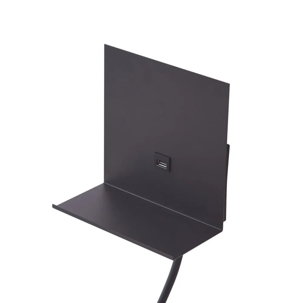 Lindby væglampe Thorid, sort, USB, LED-læselampe, G9