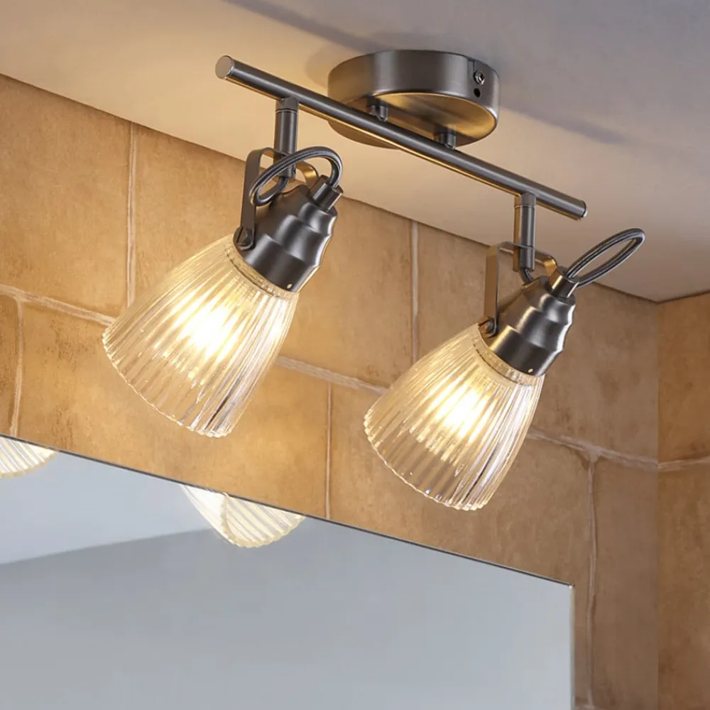 Væglampe til badeværelset Kara med 2 lyskilder og riflede, klare glasskærme til G9-pærer