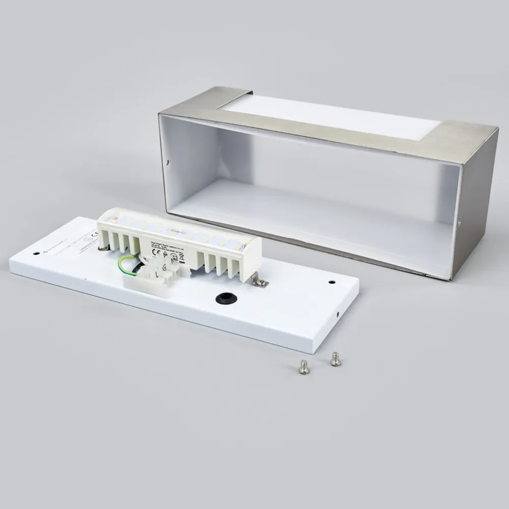 Denne LED-væglampe er beregnet til udendørs brug, hvor det rustfrie stål naturligvis gør god tjeneste. LED-pærene er dækket af en hvid polycarbonatskærm, så lyset spredes jævnt i omgivelserne. Desuden har de en god energieffektivitet, så forbrugerne ikke behøver at bekymre sig om et øget strømforbrug, selvom der produceres et kraftigt lys.