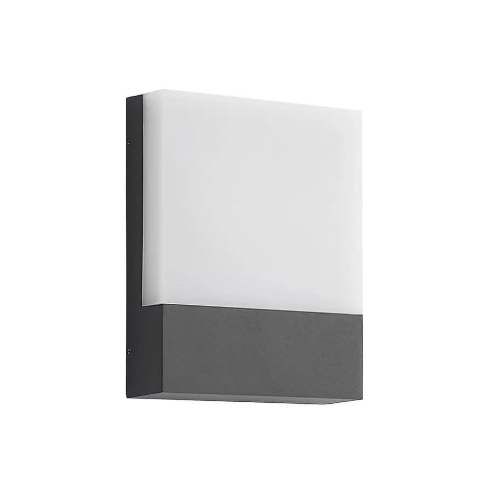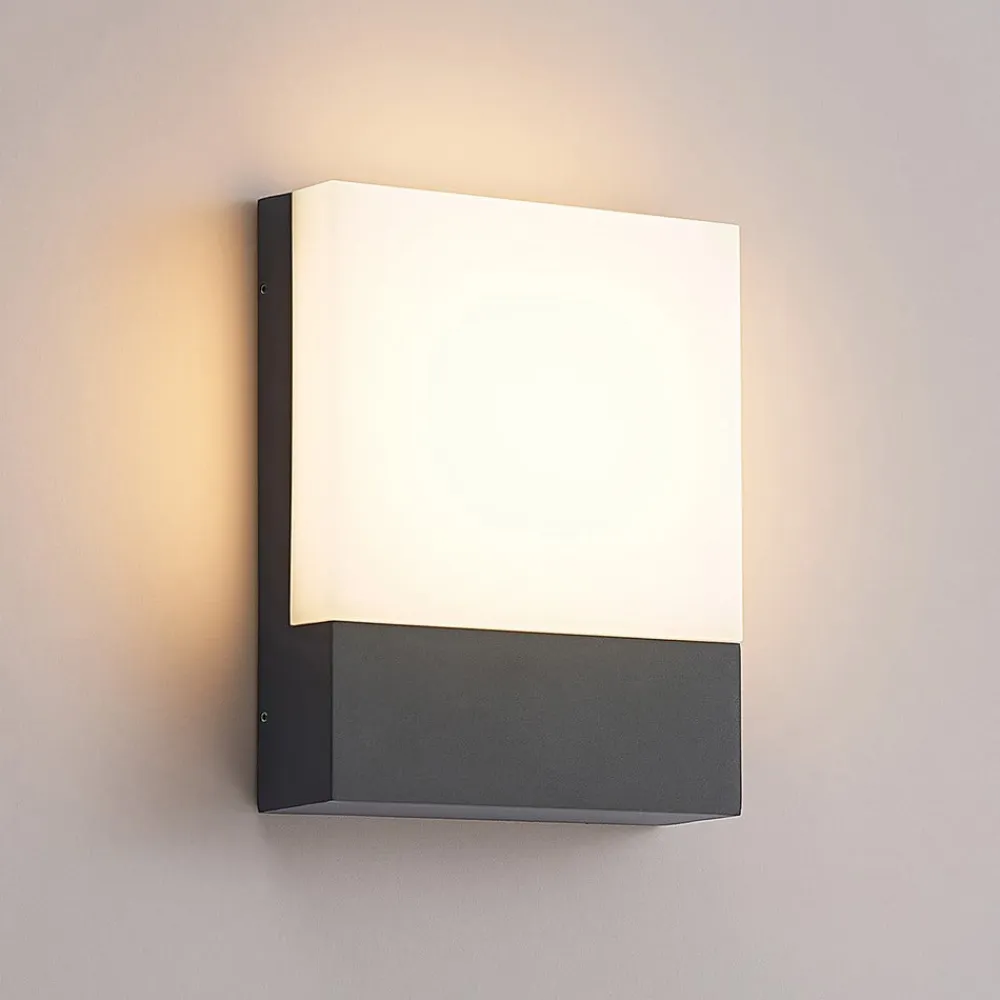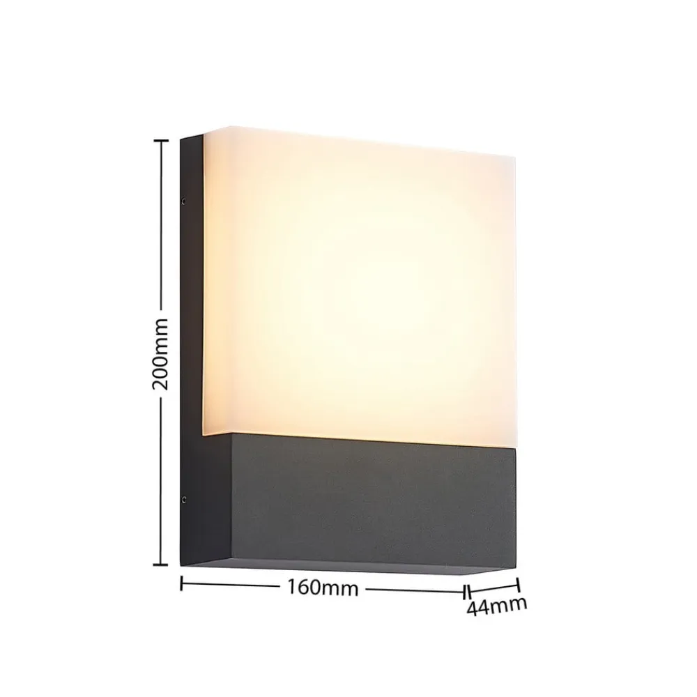 Vanira LED udendørs væglampe har et klart struktureret design. Dens kantede hus er lavet af aluminium, mens dets opalhvide lampeskærm er lavet af plast. Dette fungerer også som en diffusor og gør det muligt for lyset at komme blidt og jævnt frem.