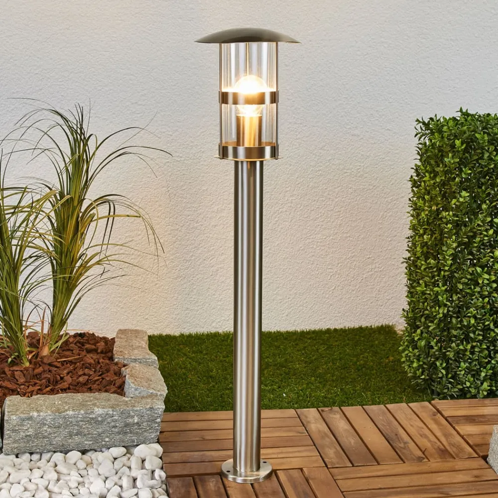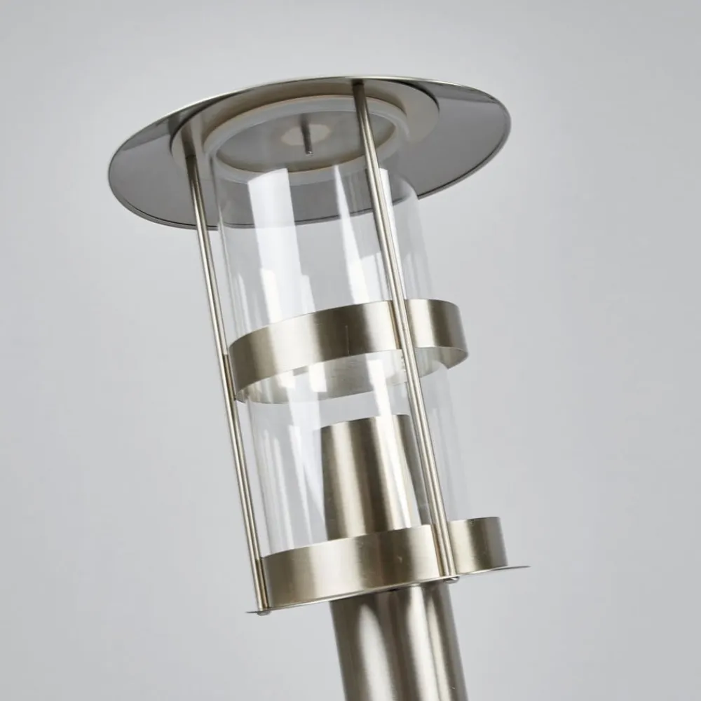 Vejlampe Noemi med klar plastindsats og rustfrit stålstel