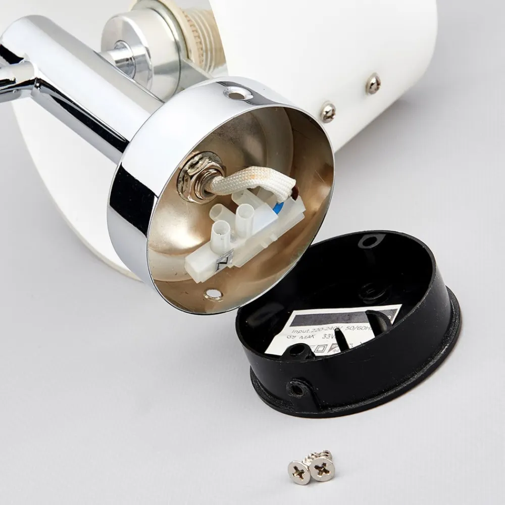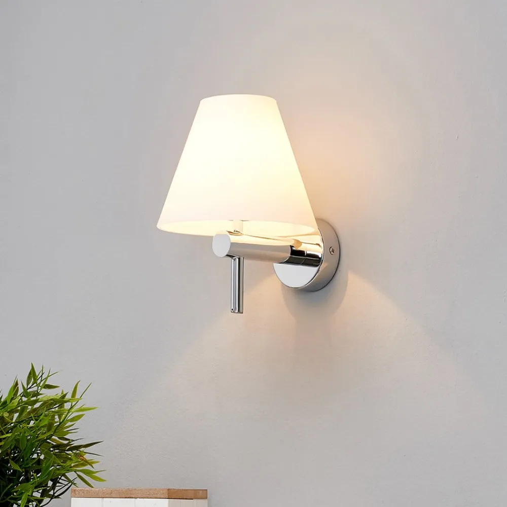 Skærme, der bliver smallere mod toppen, kan betegnes som en stereotyp for den elektriske belysning, fordi det er en meget klassisk, og har været det i årtier, hvis ikke altid. Skærmen på denne væglampe består af opalt glas, som sørger for en fantastisk varme og blød fordeling af lyset. Vægbeslaget er af skinnende krom. Denne harmoniske farve- og materialekombination passer til mange stilarter og væglampen ser fremragende ud ved siden af et spejl og tillæger det en særlig elegance.
