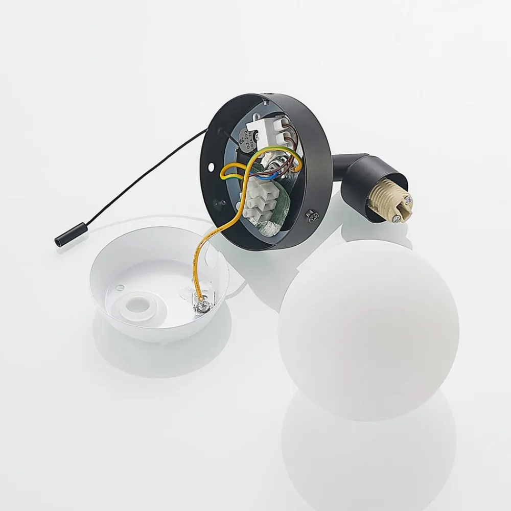 Zaniba – en markant væglampe med glaskugleskærm og trækafbryder Væglampen Zaniba vil helt sikkert finde et passende sted at belyse dit interiør. Væglampen giver dig mulighed for at justere lysstyrken efter eget ønske med en ekstern lysdæmper, er nem at betjene med trækkontakten og gør en fremragende figur med sin moderne stil. Den kombinerer dygtigt alle de kvaliteter og særlige egenskaber, der definerer Lindby-mærket. Zaniba-modellen er udstyret med en G9-fatning. Den sorte væglampe er ideel til spisestuen, stuen eller indgangspartiet. Sæt prikken over i’et på dit belysningskoncept – med denne lampe.