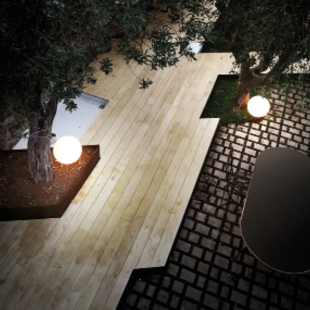 LED-gulvlampe Oh! – Kugleformet lampe til udendørs brug, E27 Cirklens magiske perfektion kombineres med lysets naturlighed for at skabe en elegant lyskugle. Oh! er en attraktiv gulvlampe med diffusor og E27-fatning, fremstillet af hvid polyethylen ved hjælp af rotationsstøbningsprocessen og med en glat, jævn overflade. En E27-stikdåse er installeret i diffusoren, som kan udstyres med en lyskilde efter eget valg. Oh! er perfekt som enkeltarmatur eller installeret i grupper. Den høje grad af beskyttelse mod støv og vandsprøjt gør også armaturet velegnet til udendørs områder som overdækkede terrasser, lysthuse eller haver.