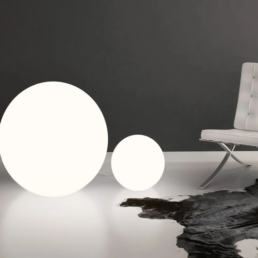 LED-gulvlampe Oh! – Kugleformet lampe til udendørs brug, E27 Cirklens magiske perfektion kombineres med lysets naturlighed for at skabe en elegant lyskugle. Oh! er en attraktiv gulvlampe med diffusor og E27-fatning, fremstillet af hvid polyethylen ved hjælp af rotationsstøbningsprocessen og med en glat, jævn overflade. En E27-stikdåse er installeret i diffusoren, som kan udstyres med en lyskilde efter eget valg. Oh! er perfekt som enkeltarmatur eller installeret i grupper. Den høje grad af beskyttelse mod støv og vandsprøjt gør også armaturet velegnet til udendørs områder som overdækkede terrasser, lysthuse eller haver.