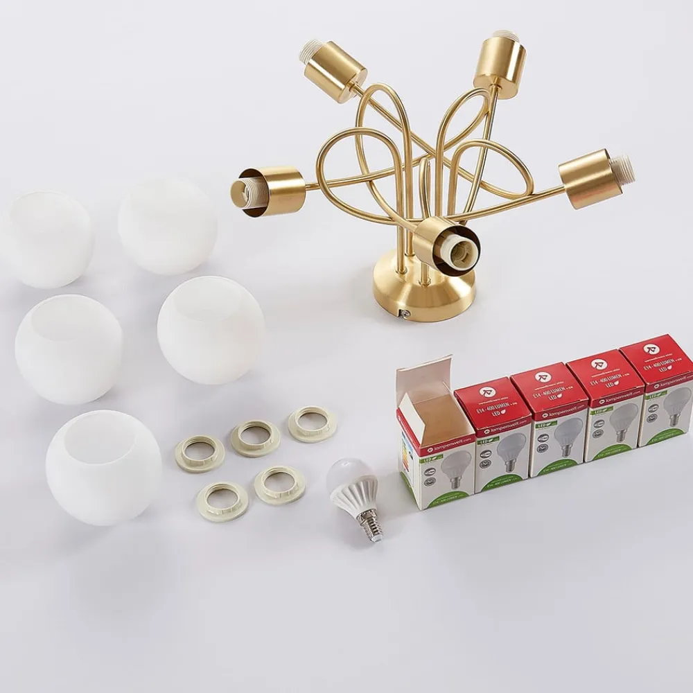 Vær den første til at anmelde “loftlampe Elaina, Ø50cm, 5 lyskilder, messing, glas, E14^Lindby Clearance” Annuller svar