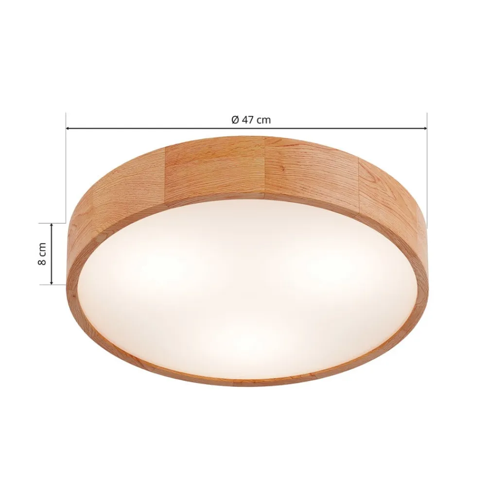 Envostar loftlampe Kerio kombinerer moderne design med naturlige materialer og skaber dermed en harmonisk atmosfære i ethvert rum. Fremstillet af højkvalitets egetræ og satineret glas bringer denne lampe en varm og indbydende stemning i stuer og soveværelser, entreer og spisestuer. Træets naturlige åretegning gør hver lampe til et unikt stykke og giver ethvert rum et individuelt præg.