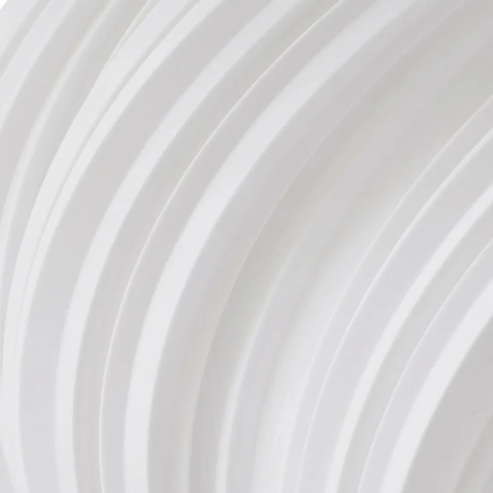 Loftlampen Nuvia imponerer med sit tiltalende design, for designeren Ingo Thieles design forener funktionalitet og æstetik, hvilket gør lampen til et stilfuldt element i enhver moderne indretning. Det særlige ved Nuvia er, at den er fremstillet af polyethylenterephthalat ved hjælp af 3D-printteknologi.