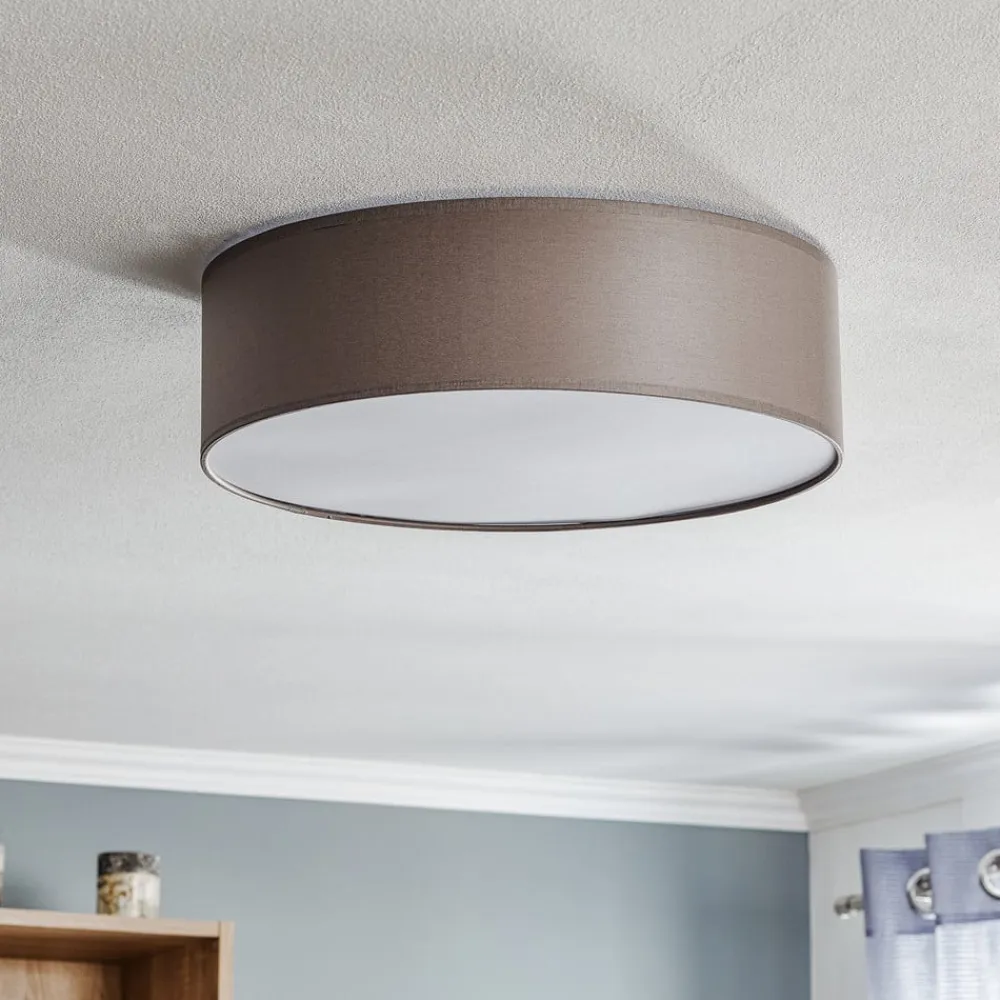 Loftslampe Rondo i tekstil i en varm brun nuance forener æstetisk design med funktionel belysning. Dens tidløse udseende passer perfekt ind i forskellige indretningsstilarter og sikrer en behagelig lysfordeling i rummet. Den højkvalitative tekstilskærm giver lampen et elegant præg og skaber en behagelig atmosfære. Takket være den gennemtænkte konstruktion er Rondo ikke kun et visuelt højdepunkt, men også en pålidelig ledsager i hverdagen.