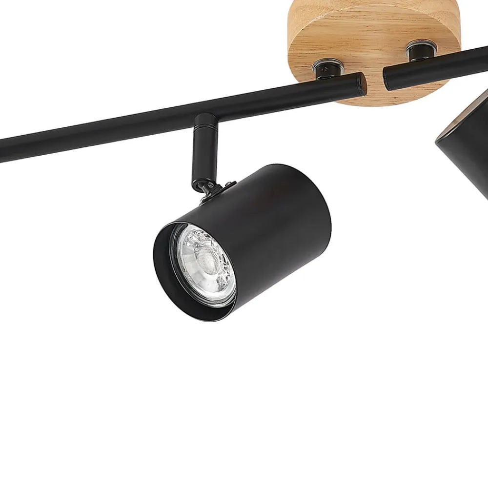 Lindby loftlampe Xiomara, 4 lyskilder, 68 cm lang, træ