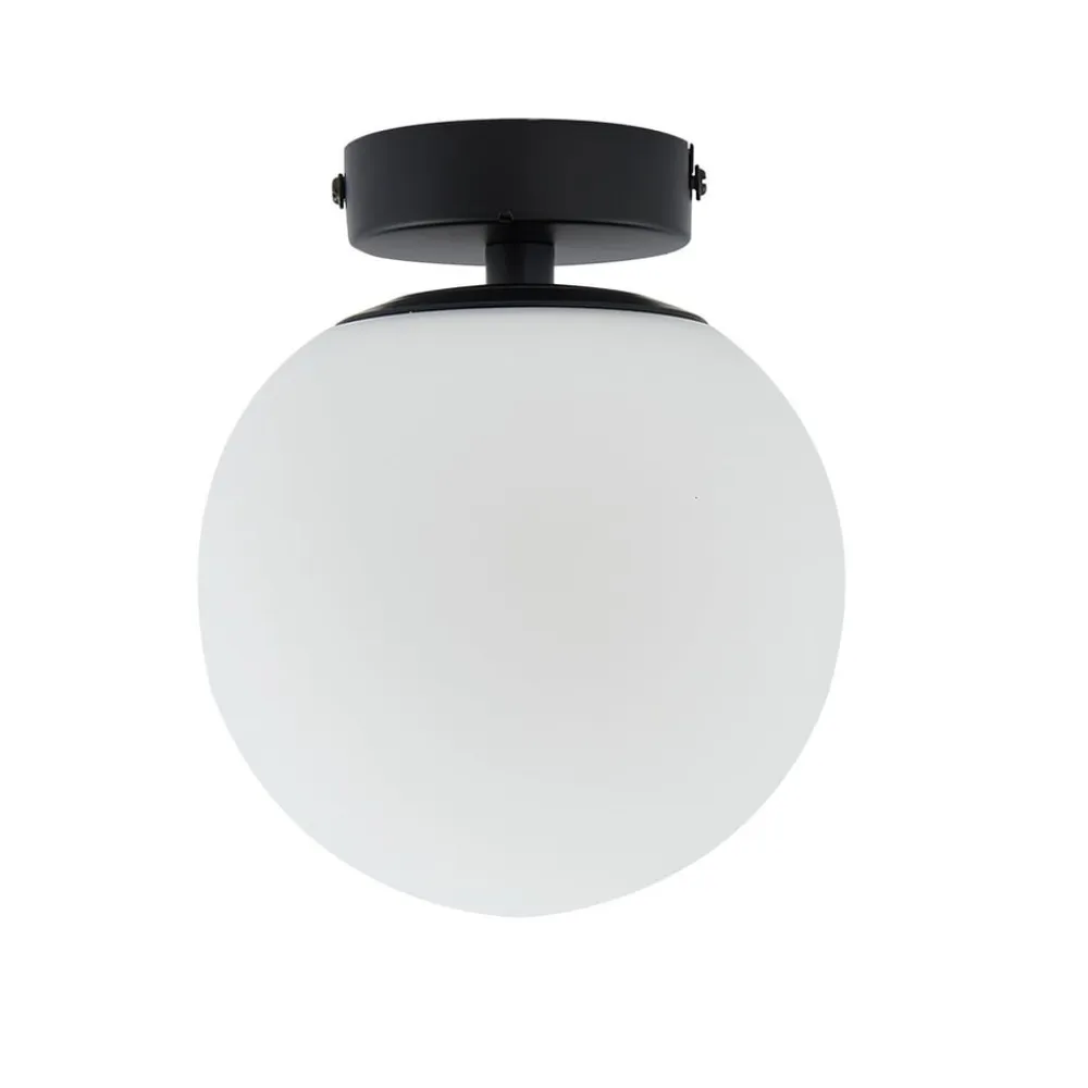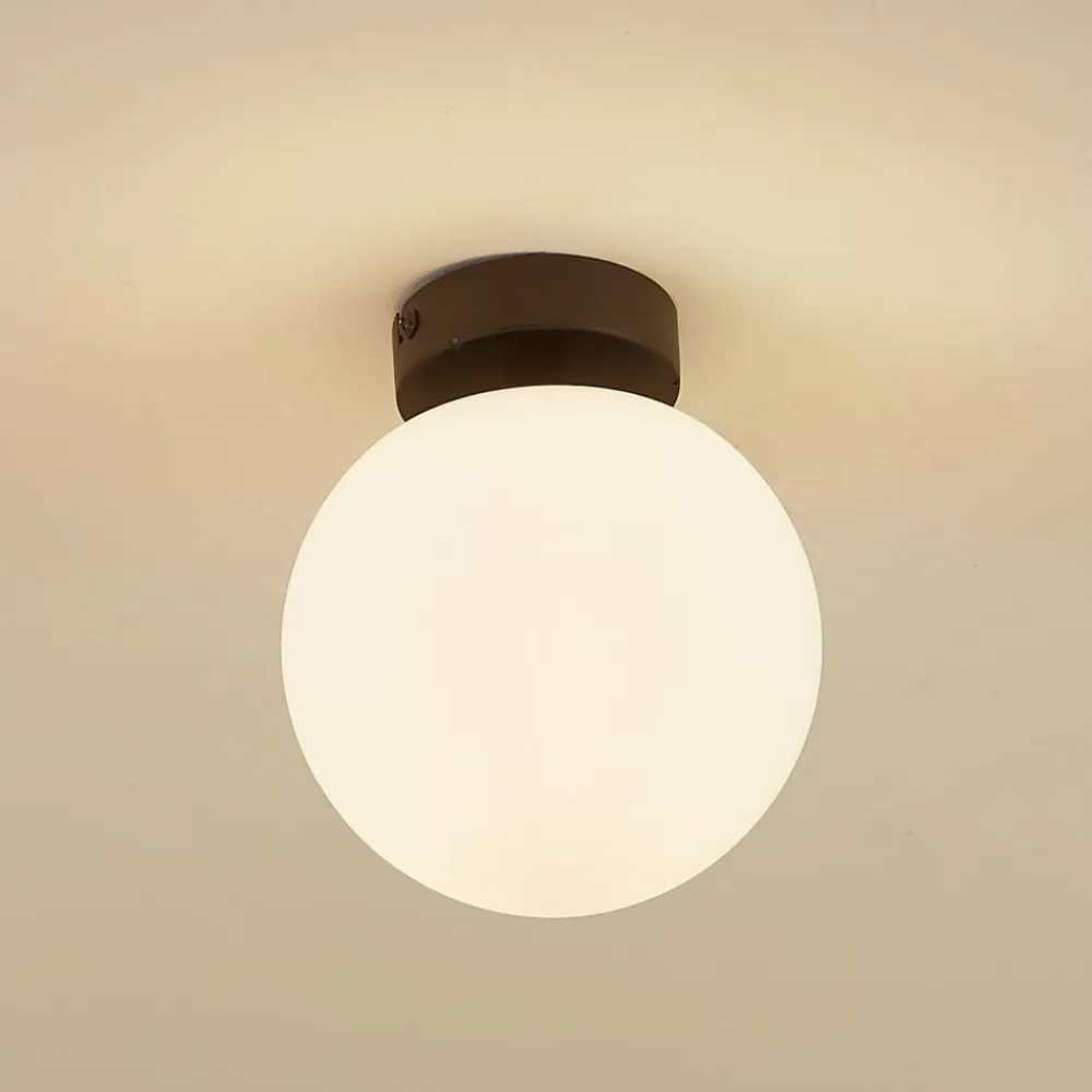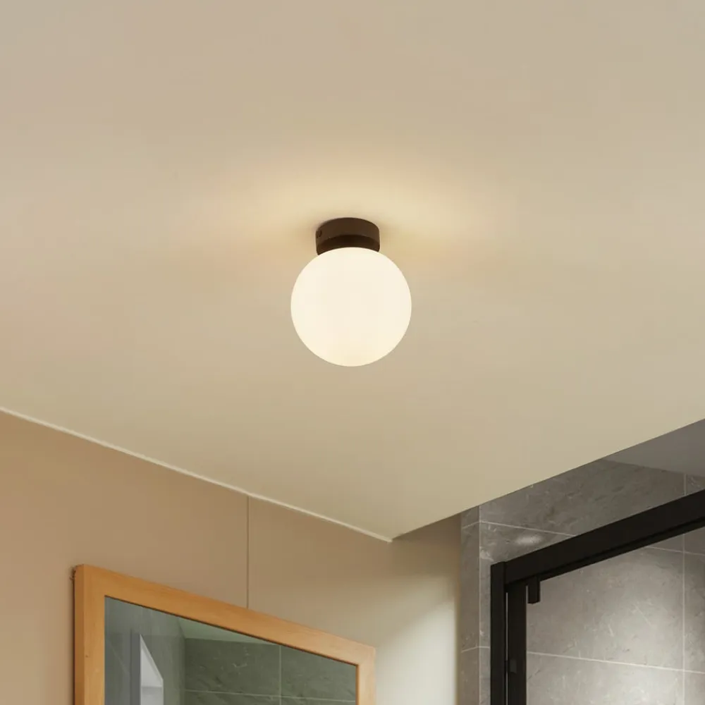 Bidolo sfærisk glasloftlampe til badeværelset Bidolo-loftlampen er et ægte blikfang i ethvert rum. Loftslampen er perfekt til badeværelset (IP44-beskyttelsesgrad) og giver en behagelig belysning. Den kan dæmpes (afhængigt af lyskilden), men der medfølger ikke en lysdæmper (ekstern vægdæmper). Det tiltalende design gør Bidolo-loftslampen til et must-have for alle, der er på udkig efter stilfuld belysning.
