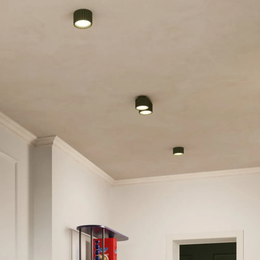 Loftlampe RIBLA overbeviser med sit tidløse design og den høje kvalitet i aluminium. Den olivengrønne farve giver ethvert rum et særligt præg og passer harmonisk ind i forskellige indretningsstilarter. Takket være den kompakte konstruktion er lampen ideel til brug i stuer og spisestuer, entreer eller køkkener.