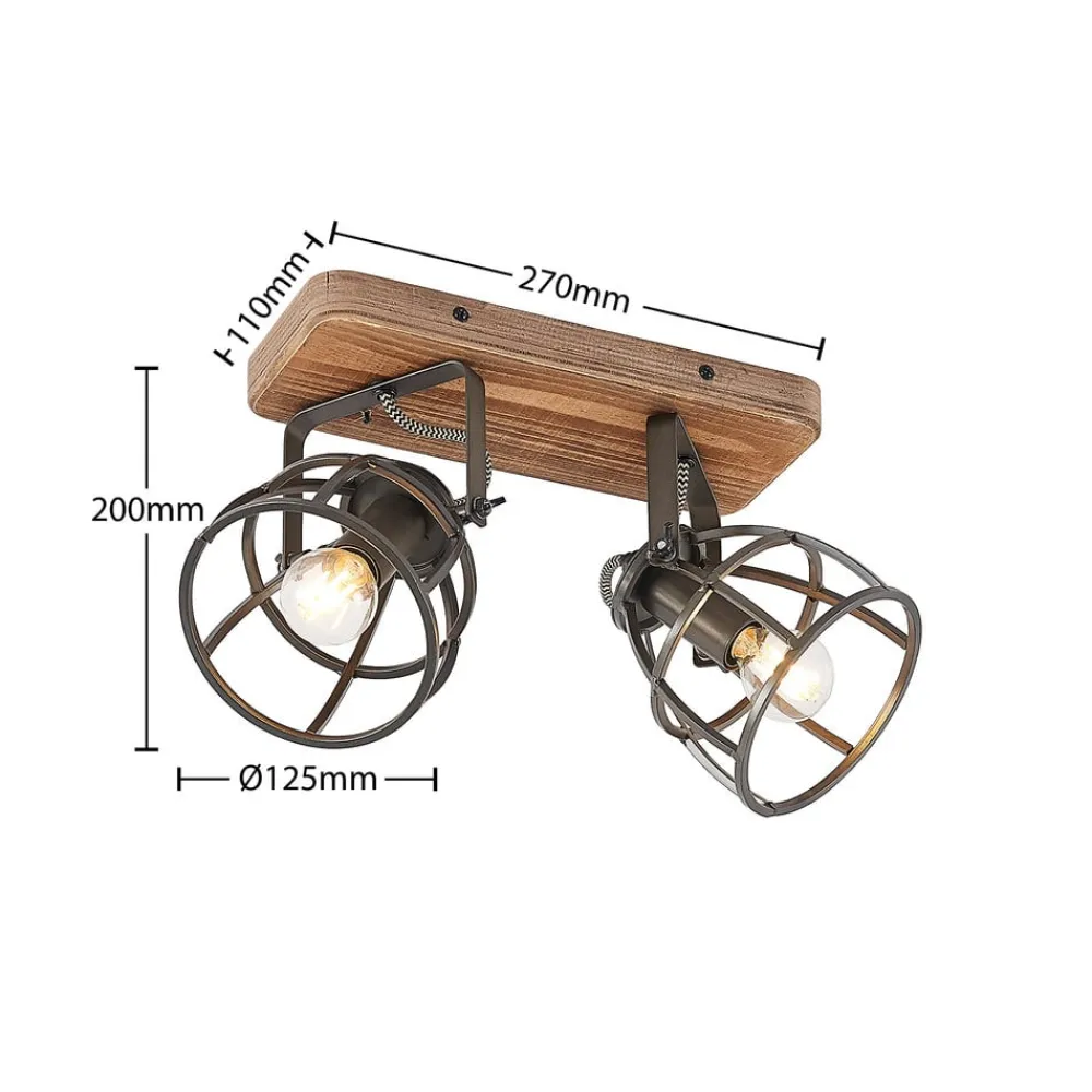 loftspot Rutger, 36 cm, 2 lyskilder, træ, bur, E14^Lindby Discount