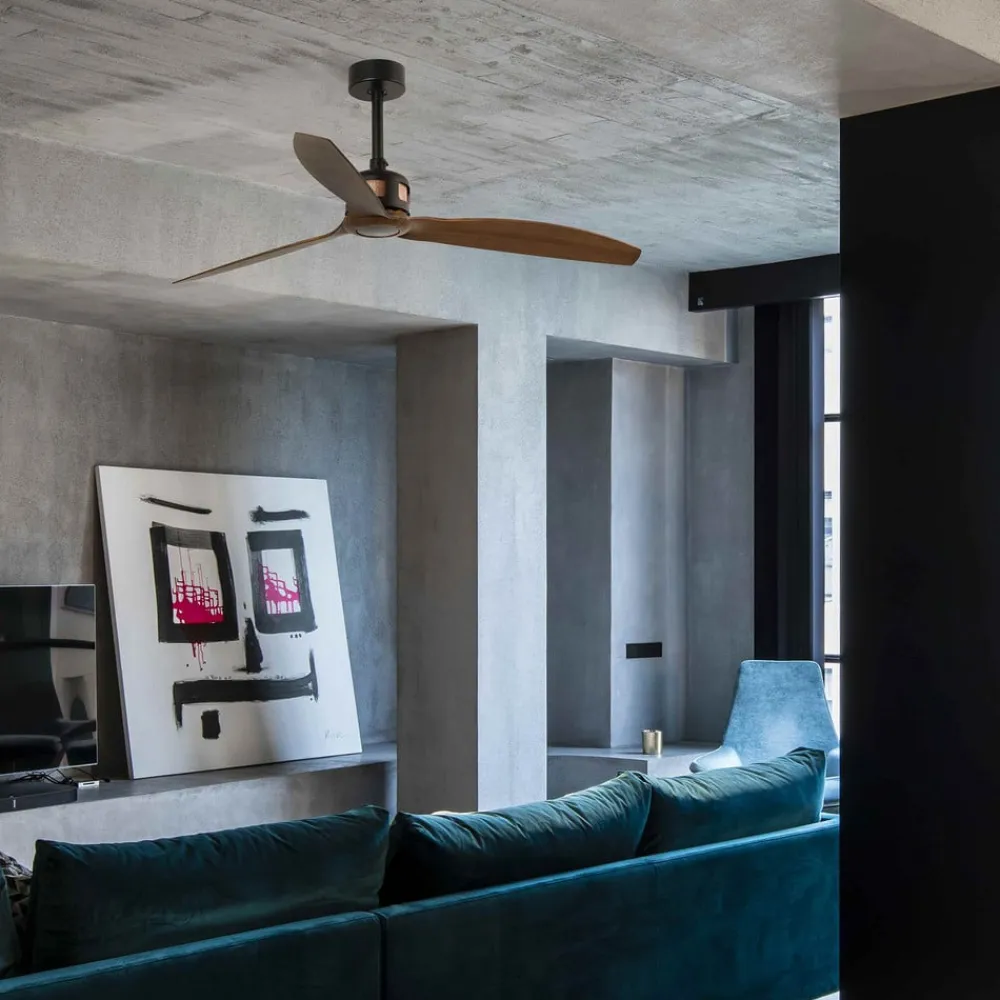 Den medfølgende fjernbetjening gør det muligt at tænde og slukke for ventilatoren samt vælge mellem seks hastighedstrin og ændre drejeretningen. Sidstnævnte gør loftventilatoren til et nyttigt element ikke kun om sommeren. Om vinteren er Copper også en fordel, da den leder den varme luft, der samler sig under loftet, tilbage til rummet og dermed understøtter opvarmningen.