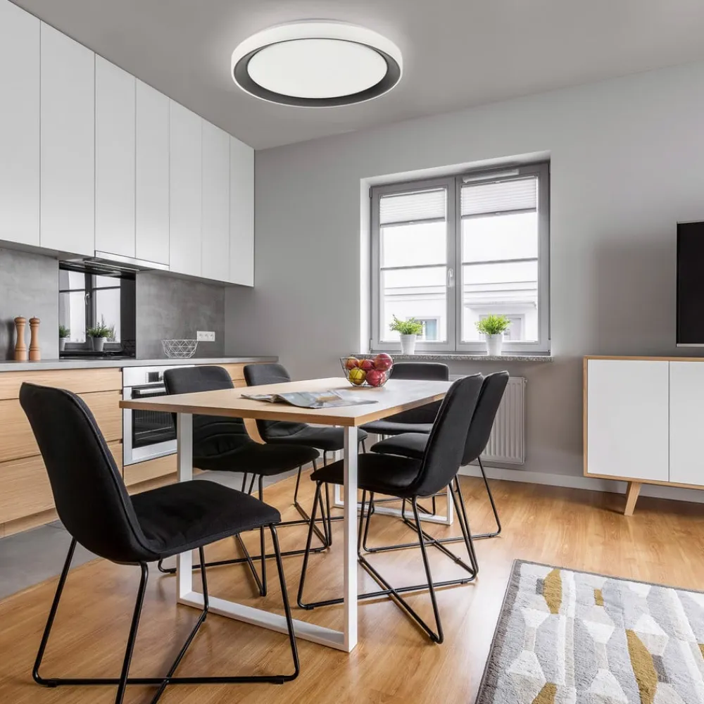 Diskret LOLA Smart Disc LED-loftlampe, der kan styres via app eller fjernbetjening