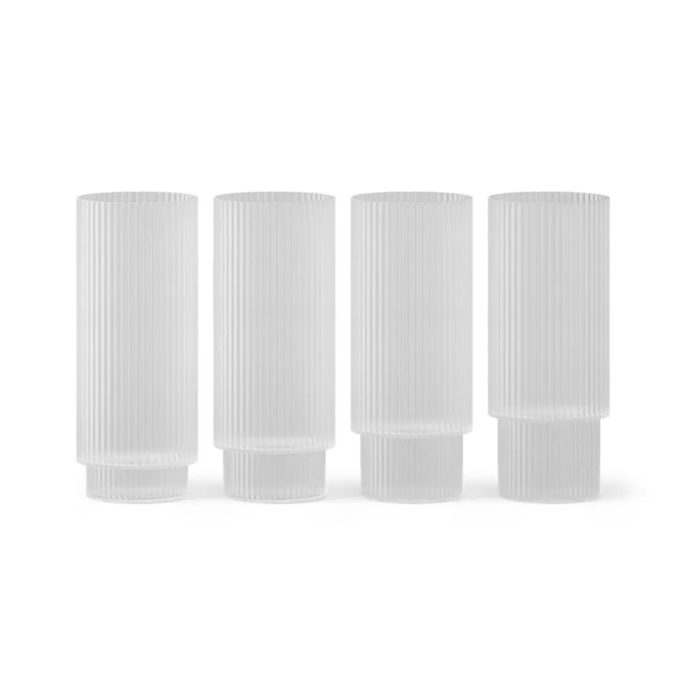 ferm LIVING Longdrink-glas Ripple, hvid, 300 ml, glas, sæt med 4 stk
