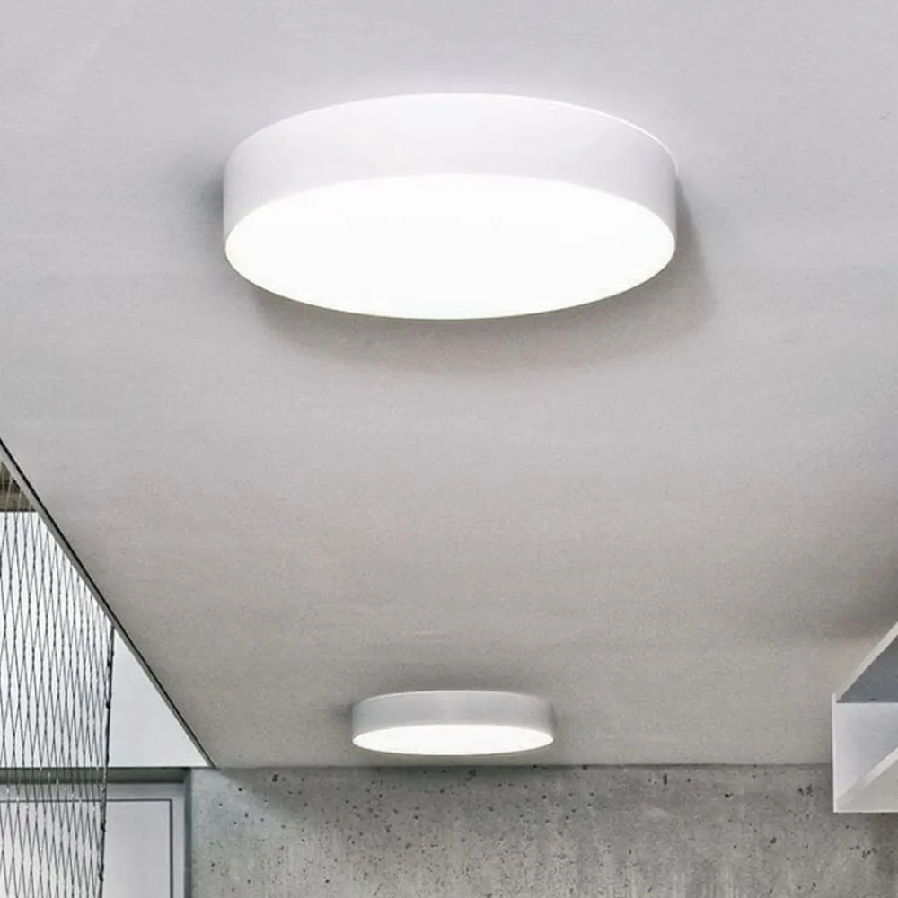 Lucia loftlampe med rund ramme og prismatisk skærm Det tidløse design af Lucia loftlampen gør det muligt at kombinere den med mange indretningskoncepter – uanset om det er klassisk eller moderne, i private eller offentlige/kommercielle omgivelser. En smal aluminiumsramme i form af en kort cylinder omgiver den flade diffusor. Sidstnævnte sikrer med sin mikroprismatiske struktur en homogen spredning af det varmhvide direkte lys; blænding og skygger minimeres – god farvegengivelse: CRI > 90 – eksternt dæmpbar (bagkant)
