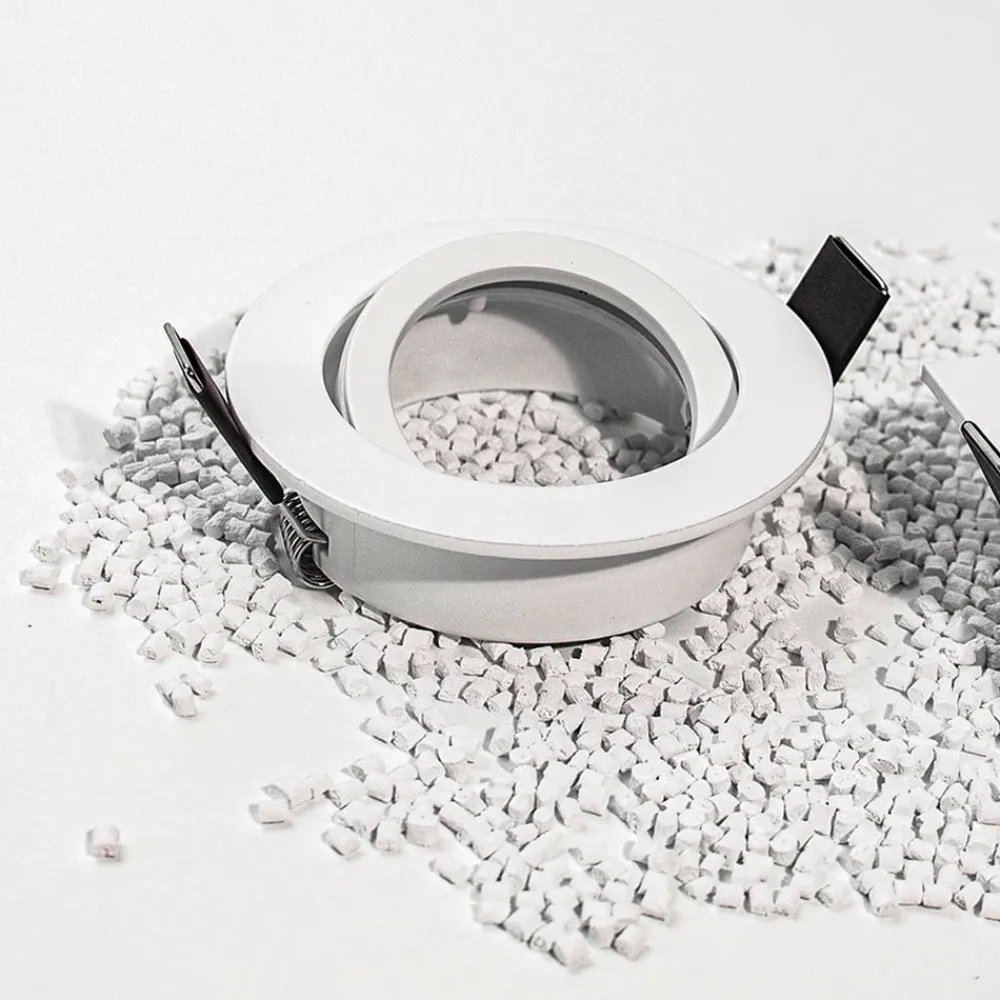 Rund indbygget spotlight med LED Loop-R af genanvendt plast – dæmpbar og vipbar