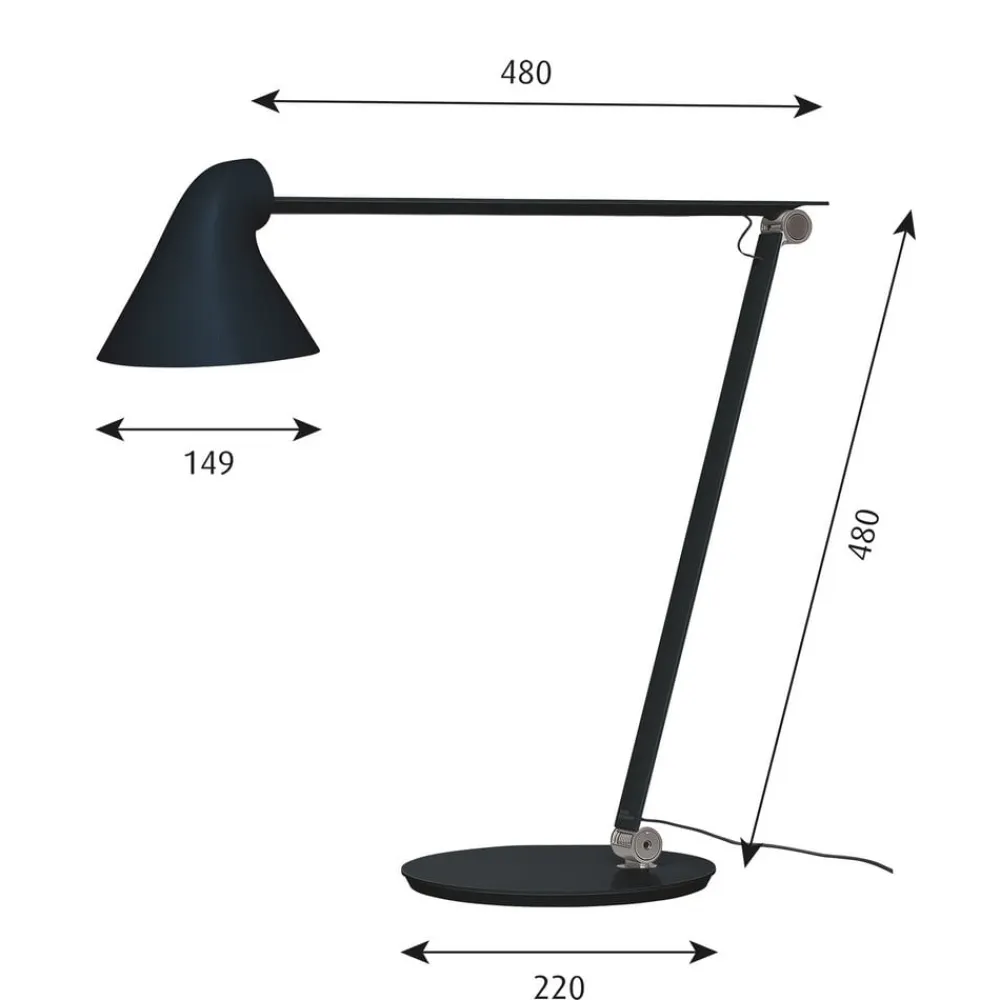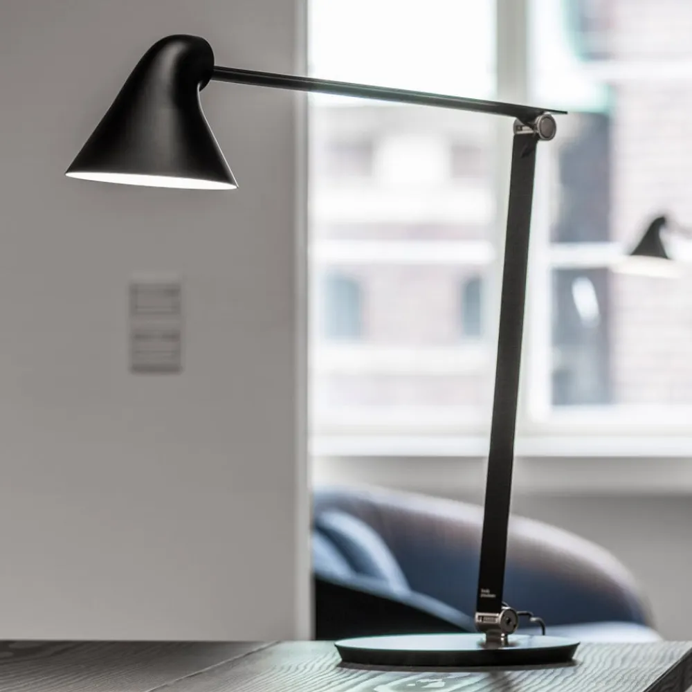 LED-skrivebordslampe NJP – alsidig, justerbar og kombinerbar På sidebordet i læsehjørnet i stuen, på skrivebordet på hjemmekontoret eller på biblioteket – NJP-skrivebordslampen er en fleksibel lyskilde af høj kvalitet til læse- og arbejdsbelysning. Det japanske designstudie nendo, som blev grundlagt af Oki Sato, lagde ved designet af NJP særlig vægt på blændfrit lys, et klart udseende og ukompliceret betjening – kort sagt funktionalitet. De to hængsler, som er placeret over stålfoden og centralt i den pulverlakerede aluminiumsramme, er særligt iøjnefaldende. De gør det muligt at justere højden og fremspringet. Skærmen giver en ekstra mulighed for at justere justeringen af lysudsendelsen. Den er malet hvid på indersiden for effektiv lysudsendelse. Kontakten på lampehovedet giver adgang til timerfunktionen (4 eller 8 timer) samt et to-trins valg af lysstyrke. Bordlampen er et produkt fra den danske producent Louis Poulsen, som siden grundlæggelsen i 1874 har opnået stor erfaring med produktion af armaturer af høj kvalitet; NJP er også fejlfrit realiseret.