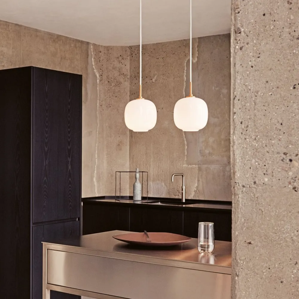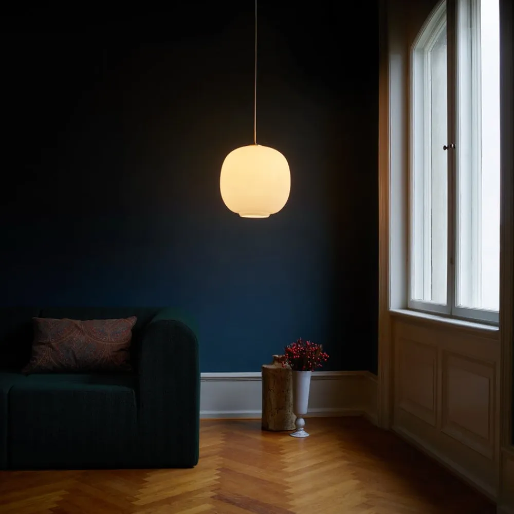 Hængelampen har en skærm af mundblæst opalglas, der består af tre lag: Den indre og ydre lag er af gennemsigtigt, blankt glas, og det midterste lag er af hvidt glas. Skærmen har en åbning i bunden, der skaber en nedadrettet lyskonus. Opalglaset gennemtrænges desuden blidt af lys, så skærmen lyser op hele vejen rundt og skaber en varm og indbydende atmosfære.