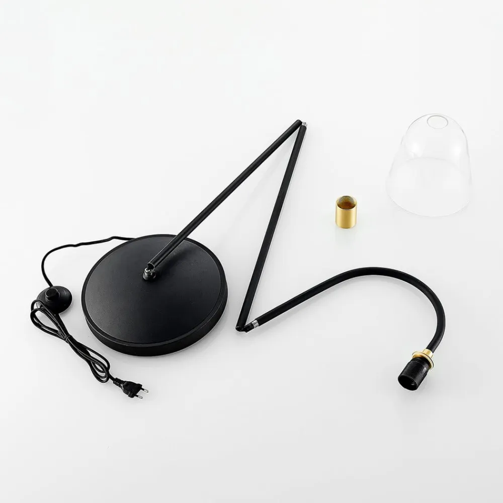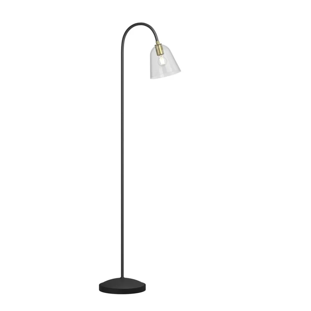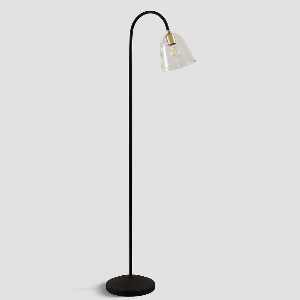 Buet gulvlampe Anjita med glasskærm og sort stel
