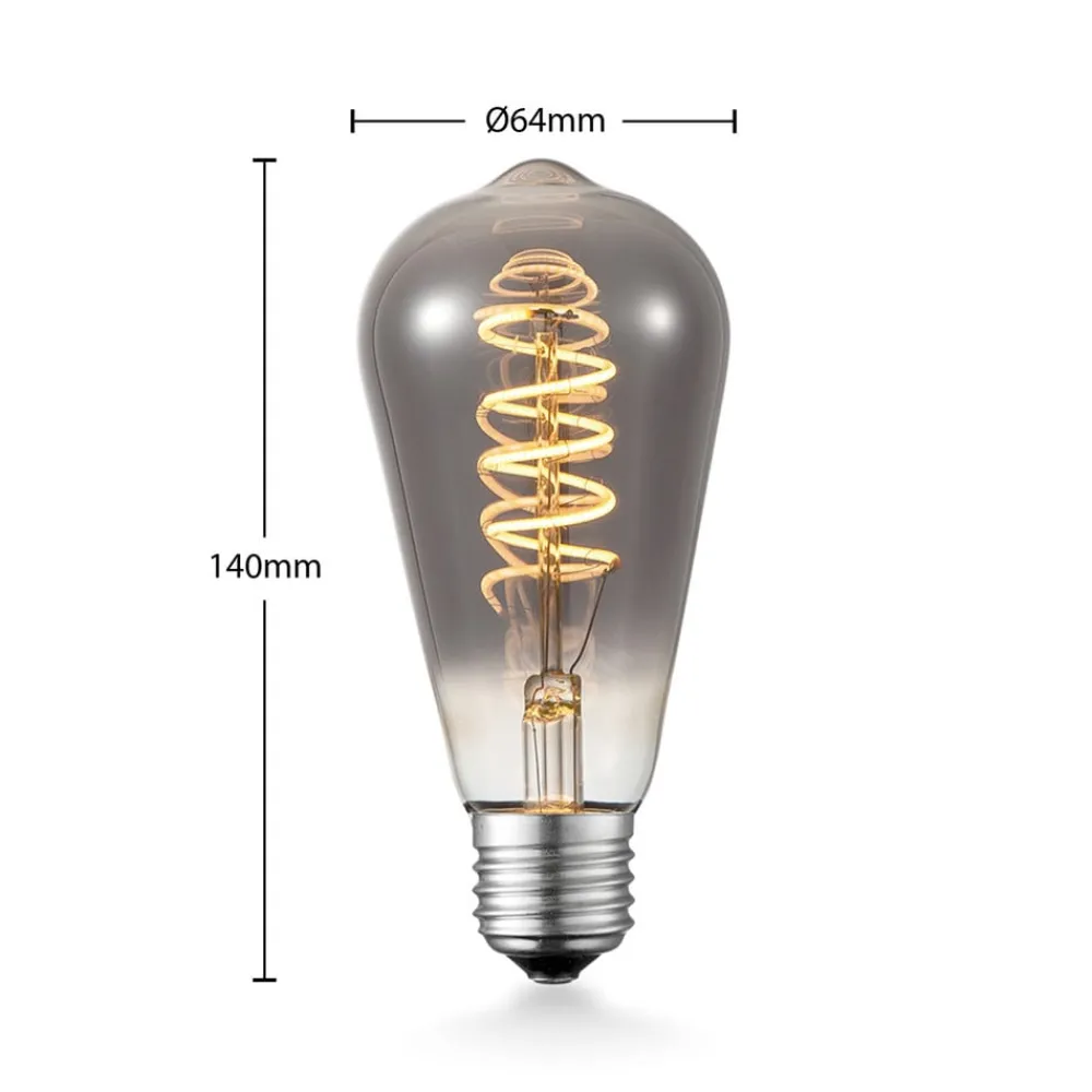 Lucande Dæmpbar Led-Pære|Filament Pære>LED-pære E27 ST64 4W smoke 1.800 K dæmpbar