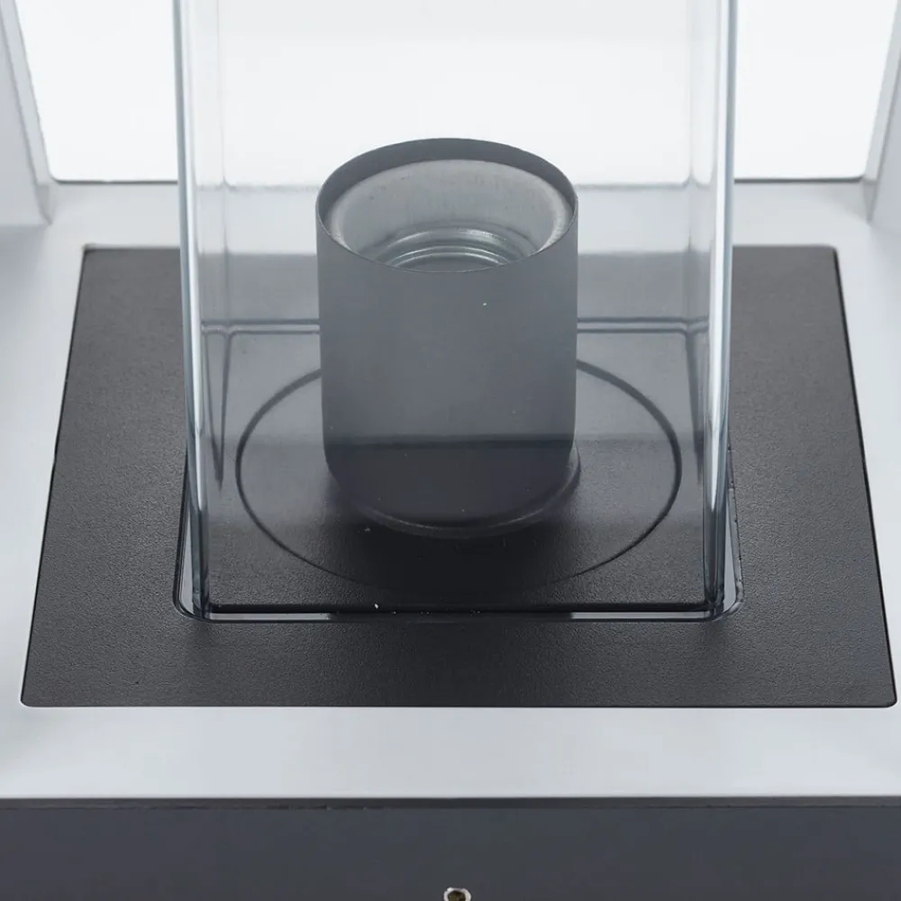 Stilfuld Dunia sokkellampe til udendørs brug Den mørkegrå Dunia sokkellampe er et elegant belysningselement designet til udendørs brug. De kantede former på sokkellampen i aluminium med let afrundede kanter skaber et moderne design til udendørsarealer. Det omsluttende lysområde af klar polykarbonat sender lyset jævnt ud i omgivelserne. Som et minimalistisk belysningselement kan armaturet installeres enkeltvis eller i en række og bruges i haven eller på terrassen til stemningsfuld belysning. Takket være den robuste konstruktion er Dunia godt beskyttet mod støv og vandsprøjt, hvilket gør den til en pålidelig og holdbar udendørslampe.