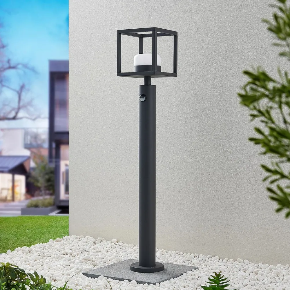Opadlysende Timio vejlampe med bevægelsessensor Timio vejlampen imponerer med sin moderne teknologi og sit designorienterede look. Den er lavet af robust aluminium og har en stabil base. Men den kubiske ramme, der omgiver den hvide lampeskærm, er i centrum for designet. Dens geometriske form passer godt til moderne stilarter. Denne vejlampe har en bevægelsessensor, der kan registrere bevægelse i en vinkel på 120° og i en afstand på 6 til 10 meter. Lysets varighed kan indstilles manuelt af brugeren fra 8 sekunder til 8 minutter. Timio har også en skumringssensor, der automatisk registrerer lysstyrken i det udendørs område.
