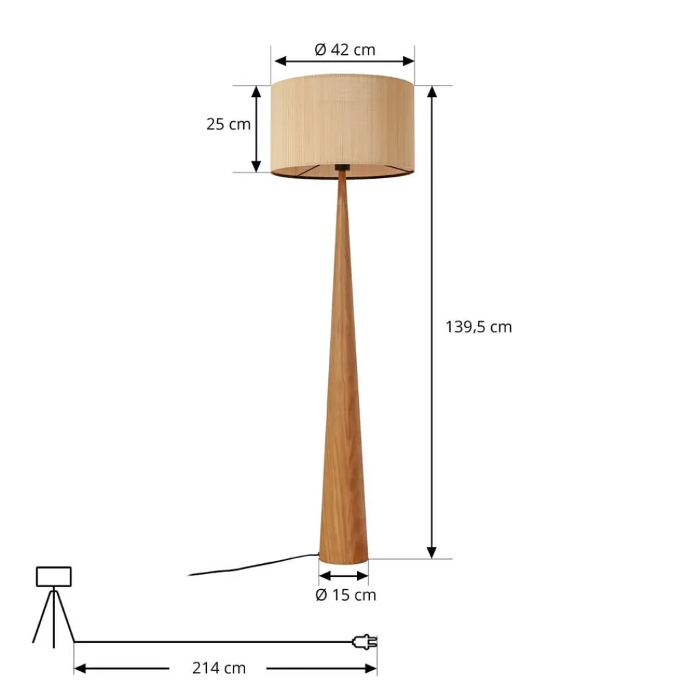 Gulvlampen Fabrena forener bambus’ naturlige skønhed med meget klare former og skaber dermed et harmonisk samspil mellem natur og design. Den naturfarvede overflade passer perfekt ind i forskellige indretningsstilarter og giver ethvert rum en varm og indbydende atmosfære. Denne lampe er ideel til stuer og soveværelser, hvor den fungerer som et stilfuldt highlight.
