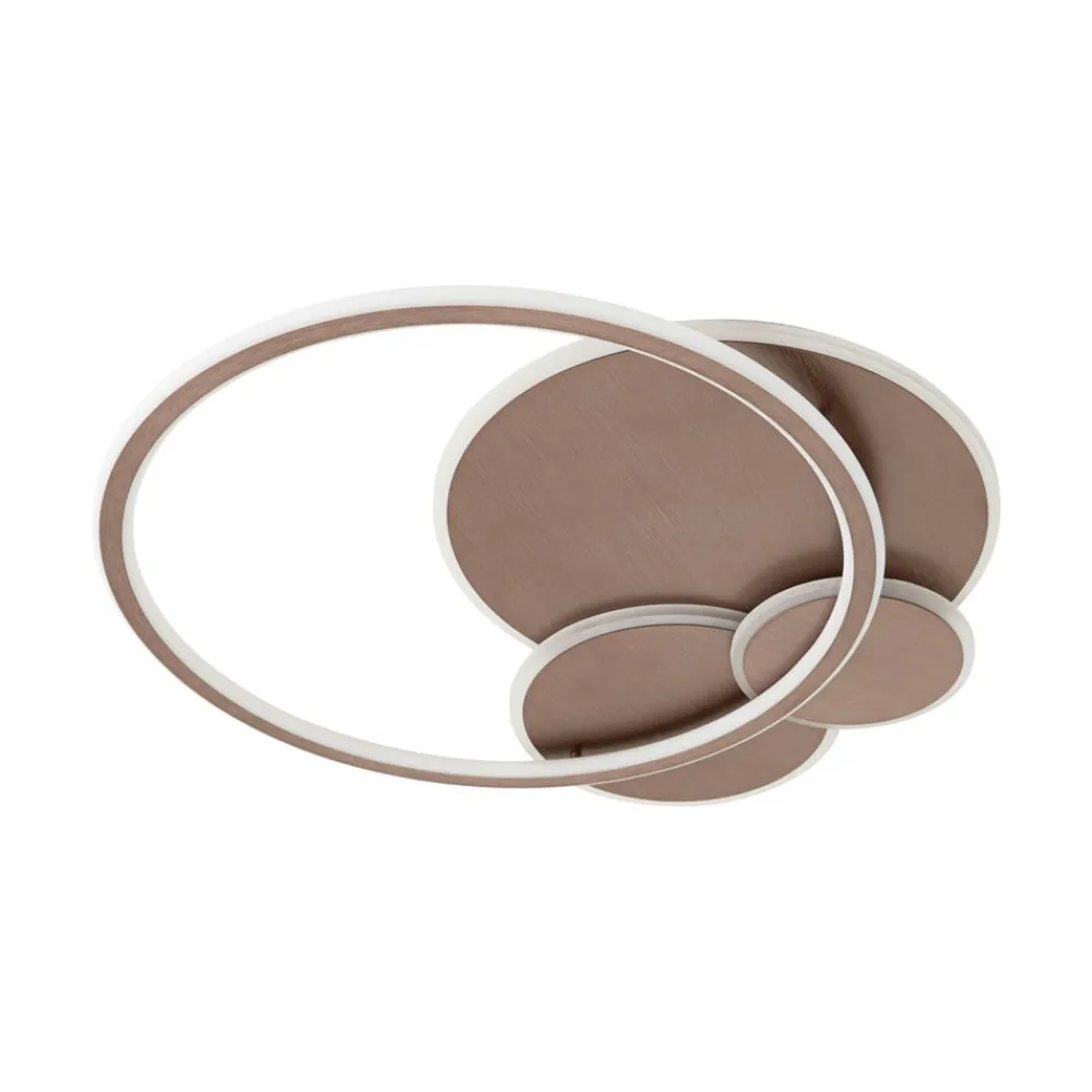 LED-loftslampe Circulo i kaffebrun forener moderne design med funktionel alsidighed. Den er fremstillet af metal og har en imponerende farvegengivelse på 90 Ra, der bader ethvert rum i et harmonisk lys. Med den integrerede CCT-funktion kan lysfarve indstilles i 3 trin mellem varmhvid (2.7000 K) og universalhvid (3.800 K + 5.000 K) for at imødekomme individuelle behov. De fastmonterede LED’er sikrer en energieffektiv belysning, der kommer til sin ret både i stuen, spisestuen og gangen.