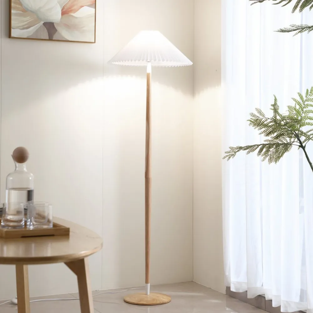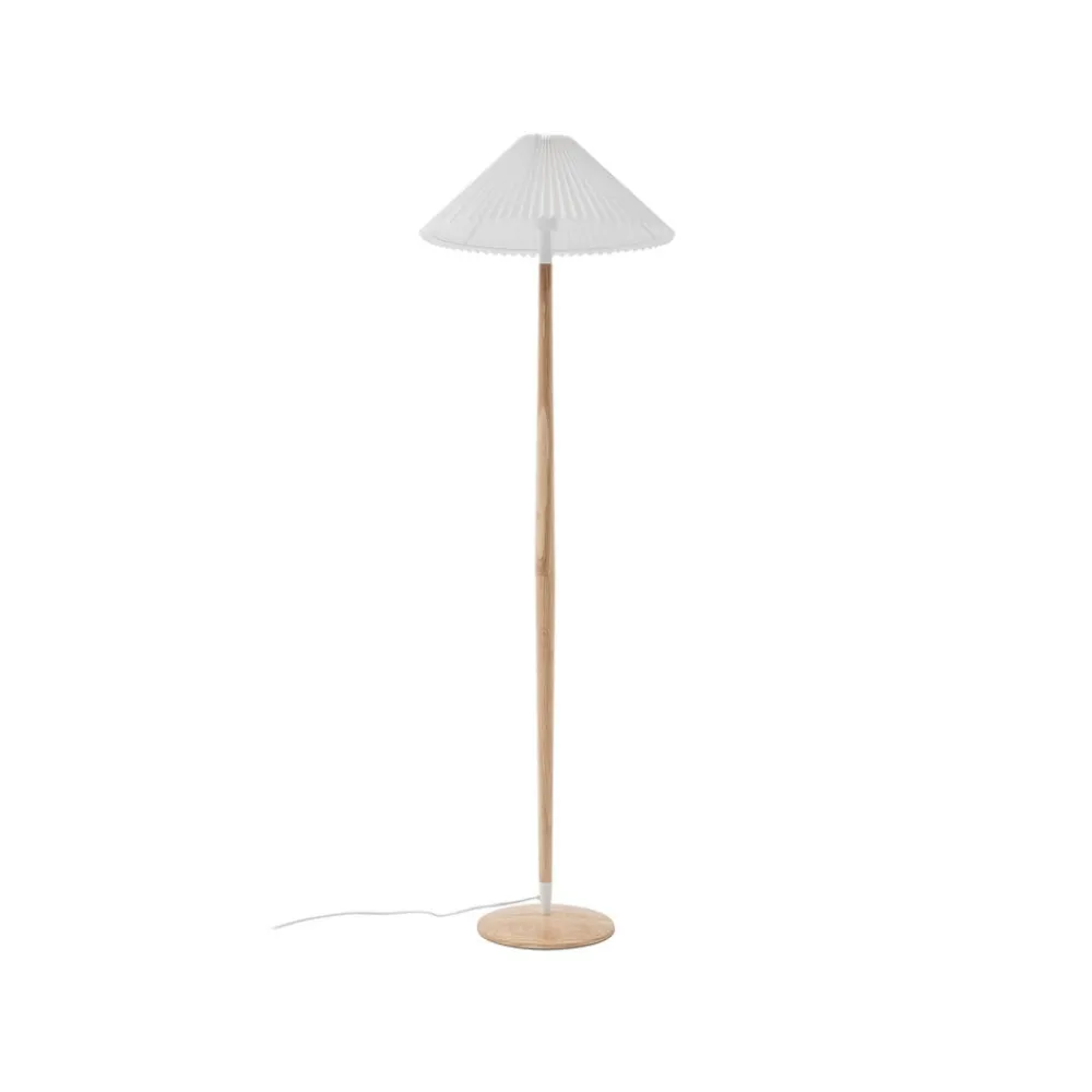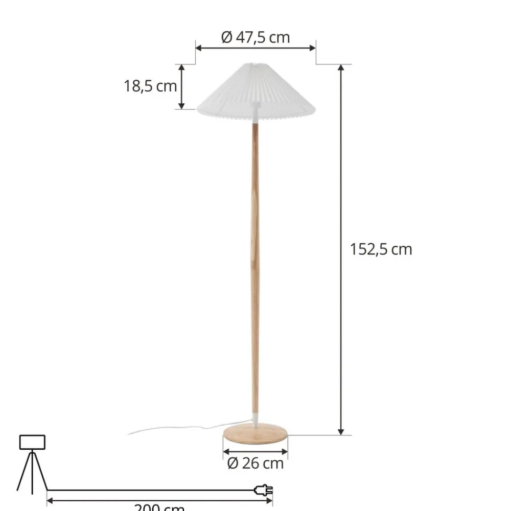 Ellorin gulvlampe af træ og tekstil med fodkontakt Denne gulvlampe skaber en hyggelig atmosfære og inviterer dig og din familie til at drømme. Lampen har et flot design og passer smukt ind i dit rum. Lad dig inspirere af Lucande-mærkets førsteklasses kvalitet og gennemtænkte design. Lampen er nem at betjene ved hjælp af en fodkontakt. Den smukke gulvlampe har et flot design og giver dine rum et hyggeligt præg. Lampen er designet til at rumme lyskilder med en E27-sokkel. Den har farven træ. Denne gulvlampe, som man hurtigt finder det rette sted til, vil berige din indretning. Lampen imponerer både visuelt og med sine lysegenskaber.