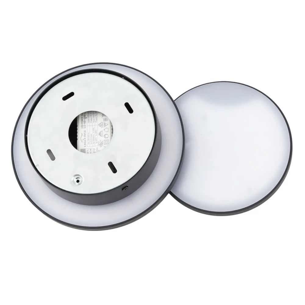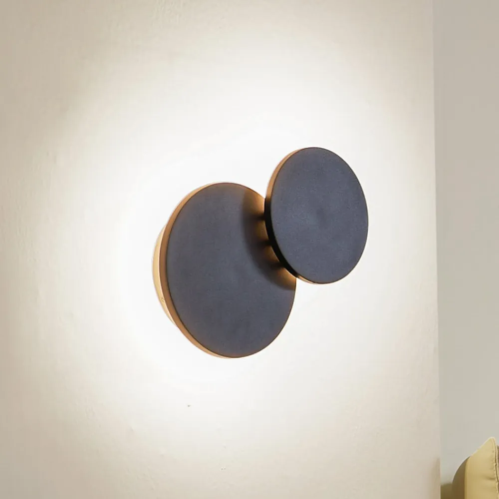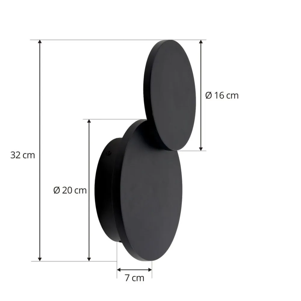 Rund Elrik LED-væglampe bestående af to elementer Elrik LED-væglampen har et enkelt udseende og består af to runde elementer i forskellige størrelser. Dens design er minimalistisk og holdt i en ensartet sort farve. På bagsiden er der integreret et LED-modul, som sørger for, at det varmhvide lys sendes ud mod væggen. Det uigennemsigtige metal skaber indirekte belysning, der udsendes via kanten af kroppen – kan også bruges som loftslampe