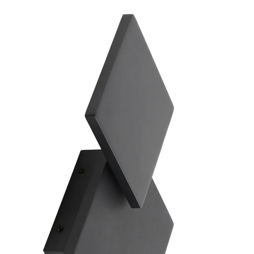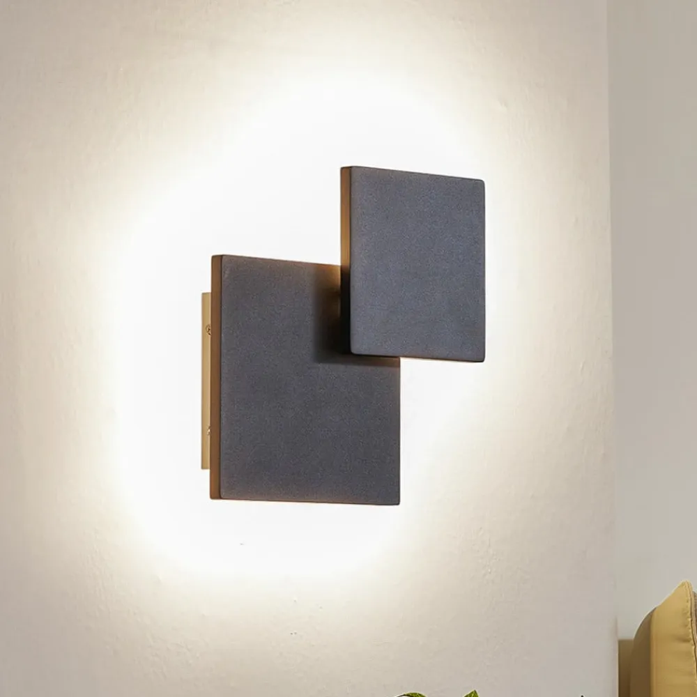 Elrik LED-væglampe til indirekte lys Elrik LED-væglampen har et enkelt, minimalistisk udseende og en kantet form. Den består af to firkanter i forskellige størrelser, som er placeret ved siden af hinanden. Den uigennemsigtige metalkrop af de to elementer i sort har et integreret LED-modul på bagsiden, som skaber indirekte belysning med varmt hvidt lys. Lyset udsendes mod væggen og giver accentbelysning omkring rammen – kan også bruges som loftslampe
