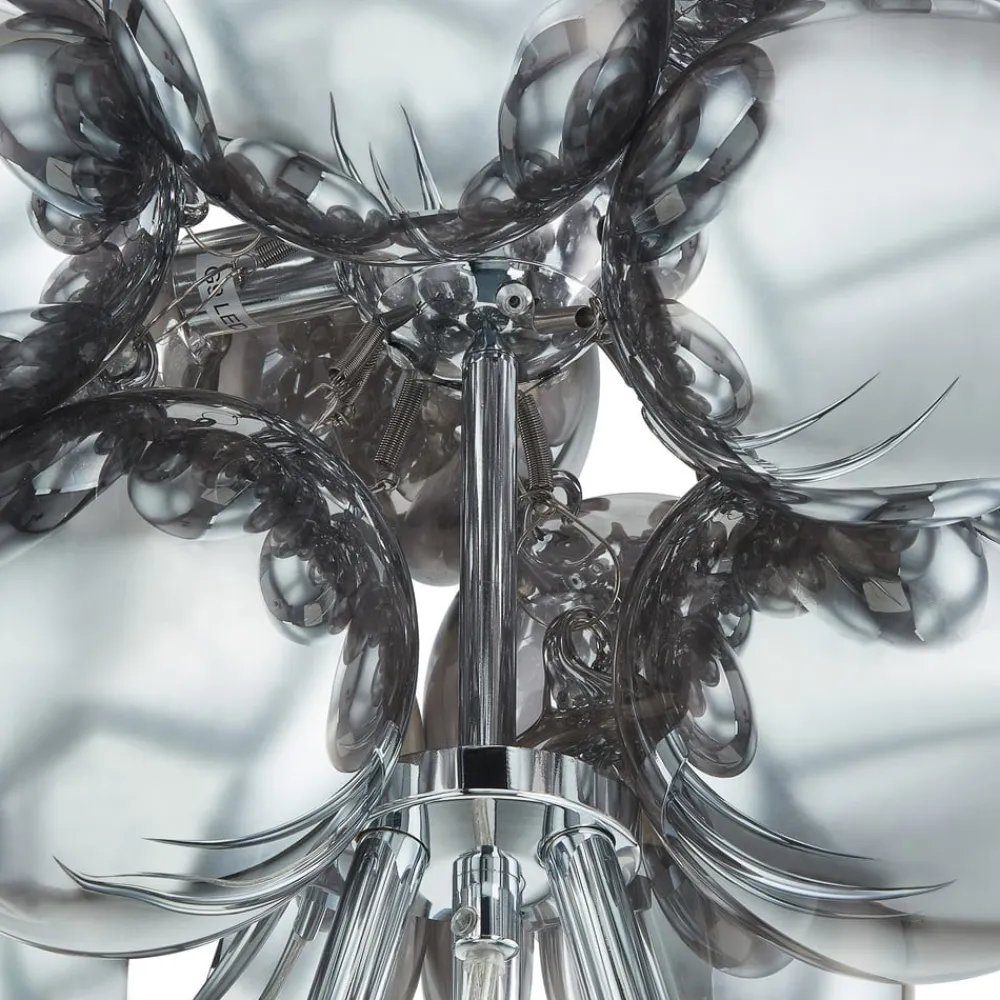 Iøjnefaldende gulvlampe Diborah med glaskugler i røggrå look