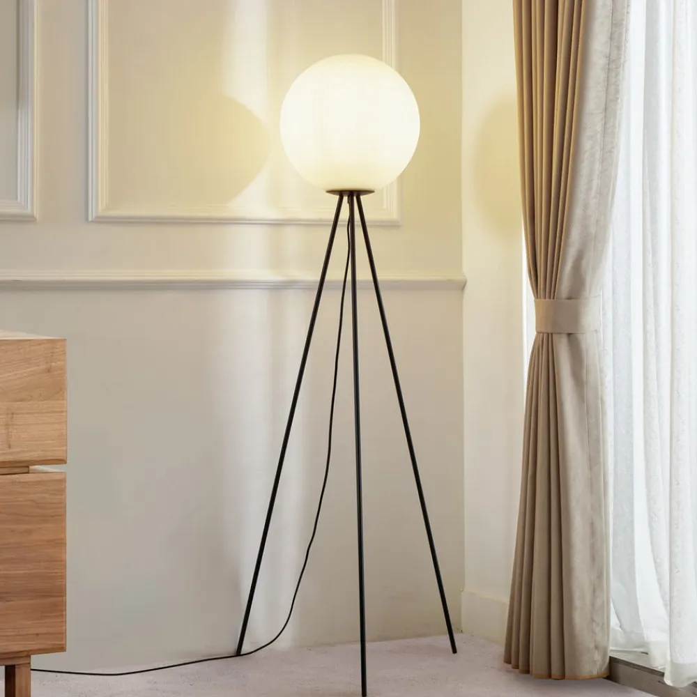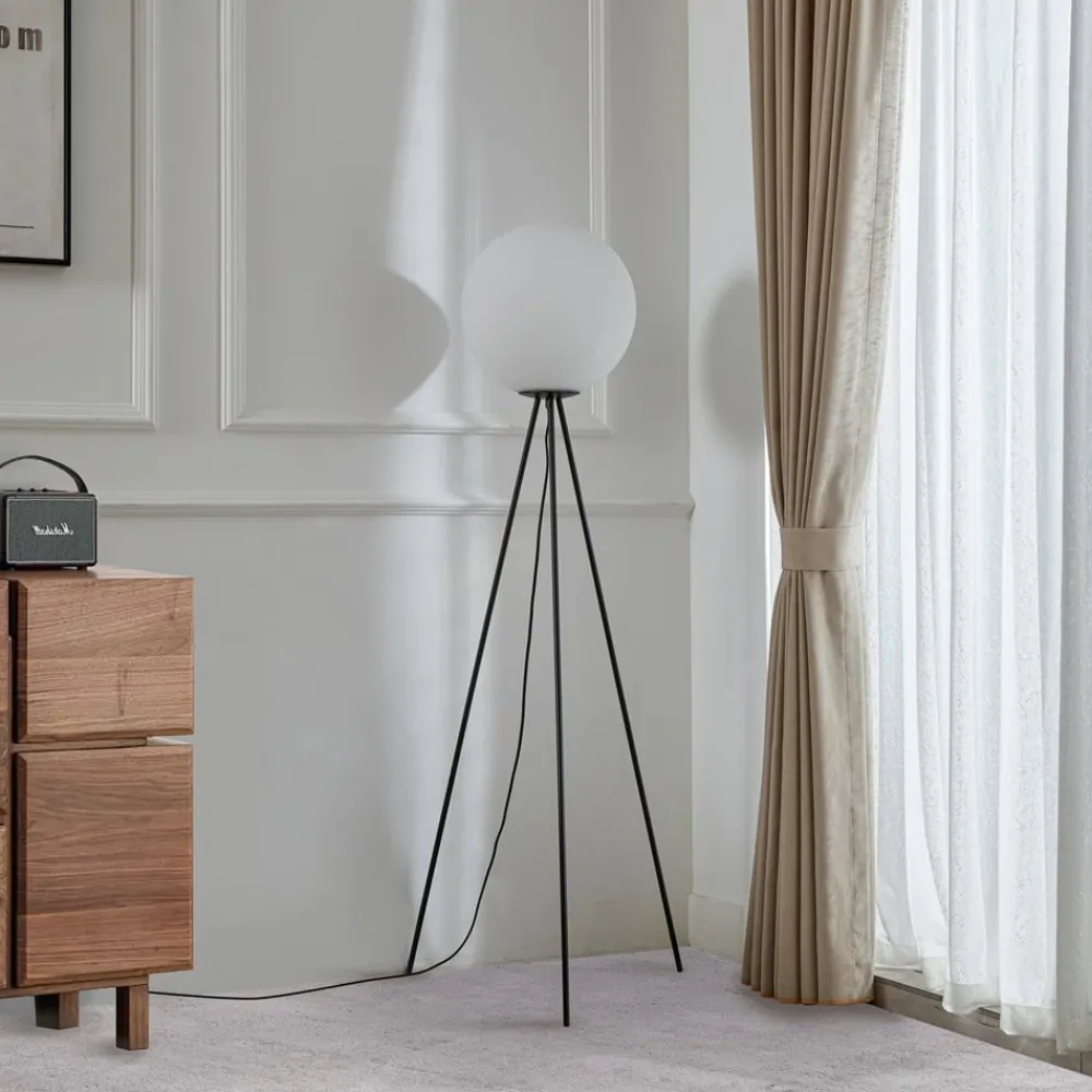 Kestralia – en enkel trebenet gulvlampe til indendørs brug med en kugleformet skærm Denne gulvlampe er et must-have til dit hjem. Lampen har et flot design og passer effektivt ind i ethvert rum. Den imponerer med Lucande-mærkets kvalitet og står derfor for en enestående boligoplevelse og et gennemtænkt design. Du kan nemt tænde og slukke for gulvlampen ved hjælp af en fodkontakt. Lampen er udstyret med en E27-fatning. Den er færdig i sort. Gulvlampen vil give et smukt præg til enhver bolig, uanset hvilken indretningsstil den kombineres med. Det er en sikker måde at lyse dine rum op på, hvilket gør den til et fremragende valg til dit interiør. Denne lampe er en fantastisk tilføjelse til dit interiør.