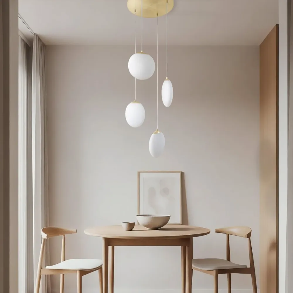 Lunelle hængelampe med 4 lyskilder i en markant farvekombination af hvid og messing