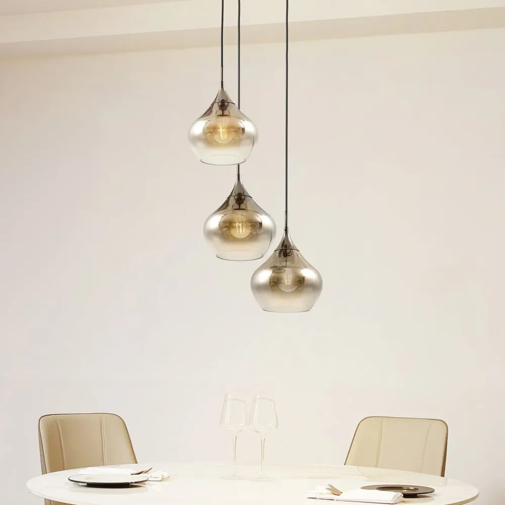 Lucande Jarven hængelampe, 3 lyskilder, sort, glas