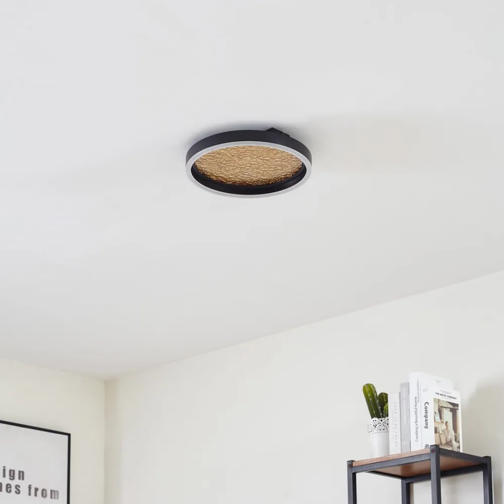Vær den første til at anmelde “Lucande LED-loftlampe Menulis, sort/guld, PC, Ø 30 cm” Annuller svar