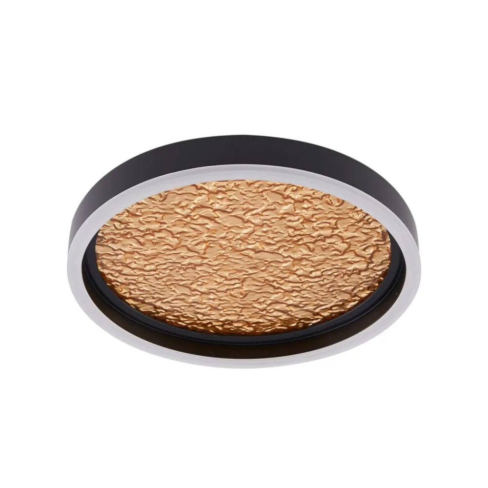 Menulis LED-loftlampe med markant design i sort og guld LED-loftlampen Menulis kombinerer stilfuldt design med innovativ lysteknologi. Kombinationen af sort og guld skaber et moderne look, der sætter accenter i ethvert rum. En vægkontakt gør det muligt at tænde og slukke lyset, som man plejer. Takket være 3-trins dæmpningsteknologien med integreret slukfunktion kan den også dæmmes til tre forskellige lysstyrkeniveauer ved at trykke på kontakten flere gange: 100 %, 50 % og 10 %.