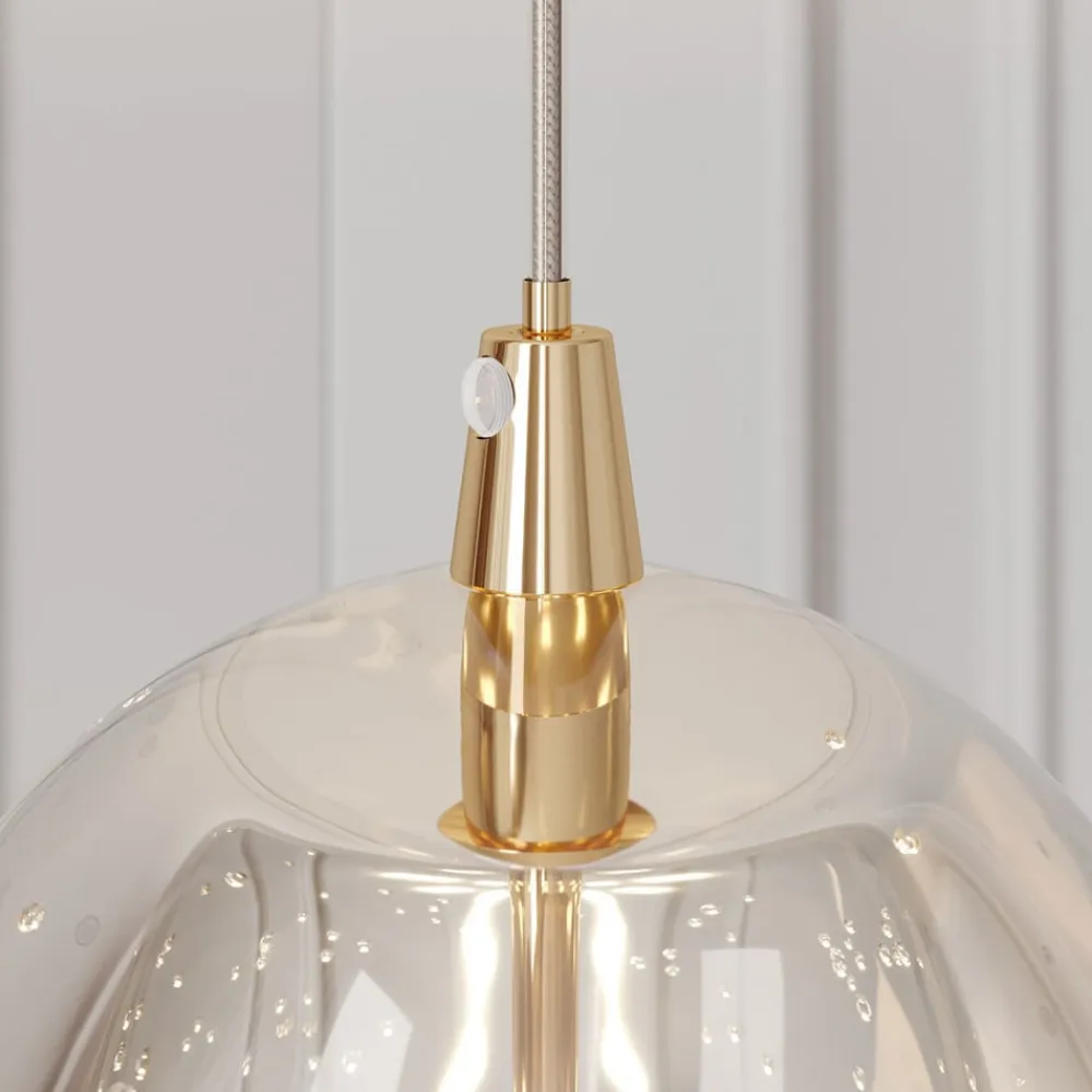 Vær den første til at anmelde “Lucande LED-pendellampe Hayley, Ø 9 cm, guldfarvet, glas” Annuller svar